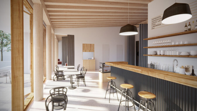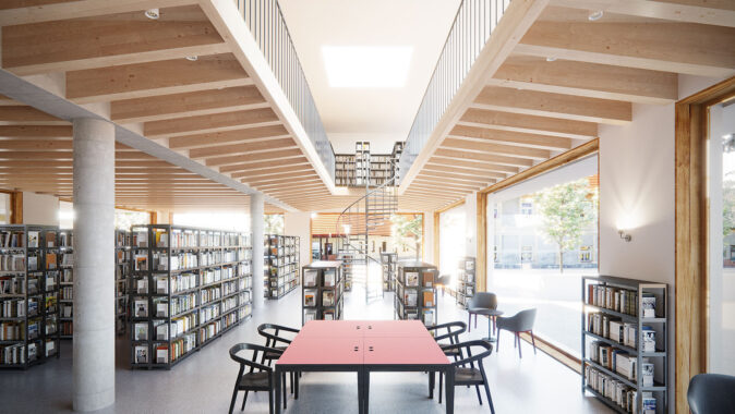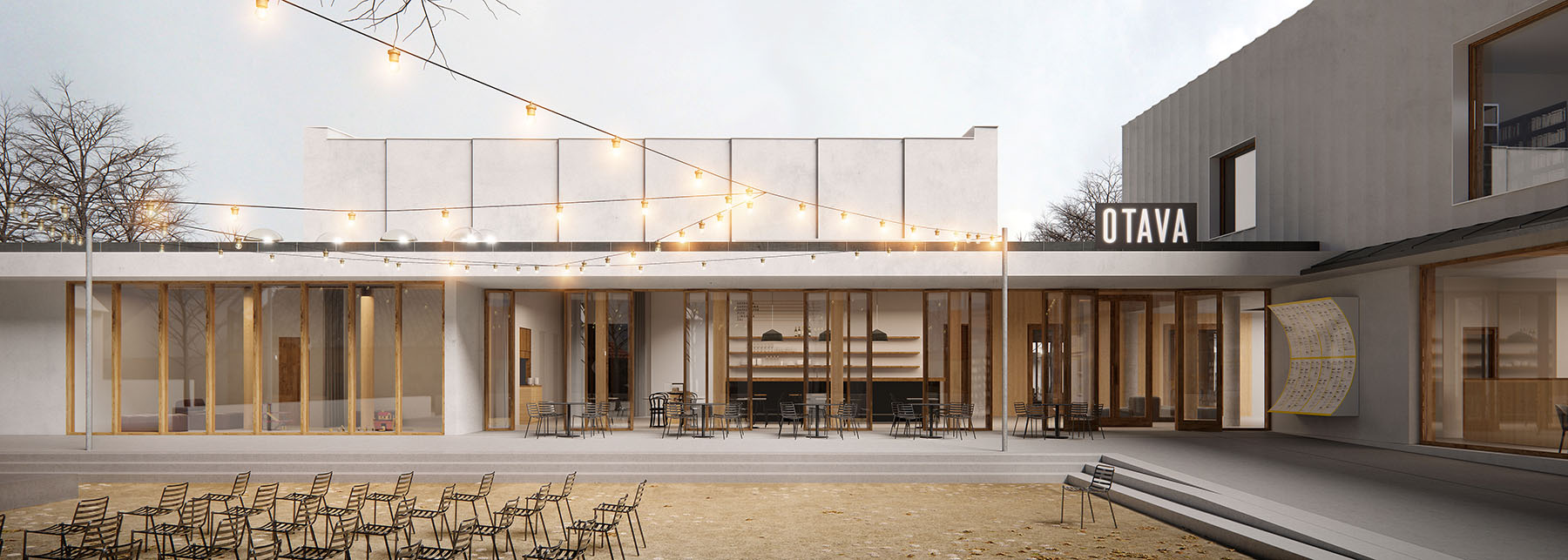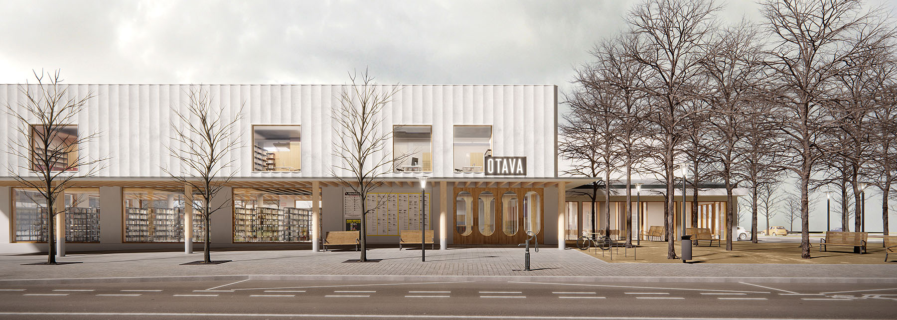 s dostavbou knihovny, kluboven a nové kavárny