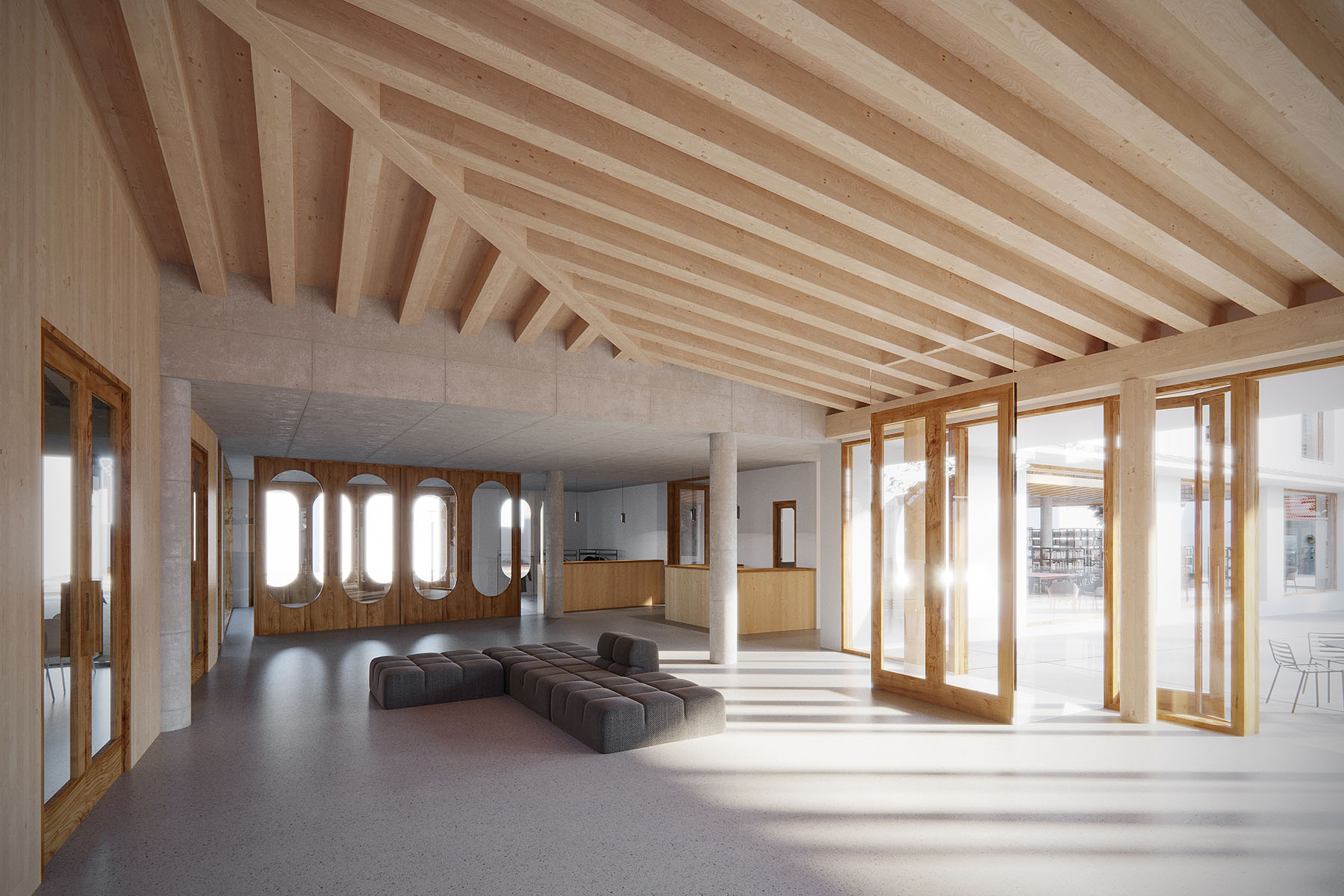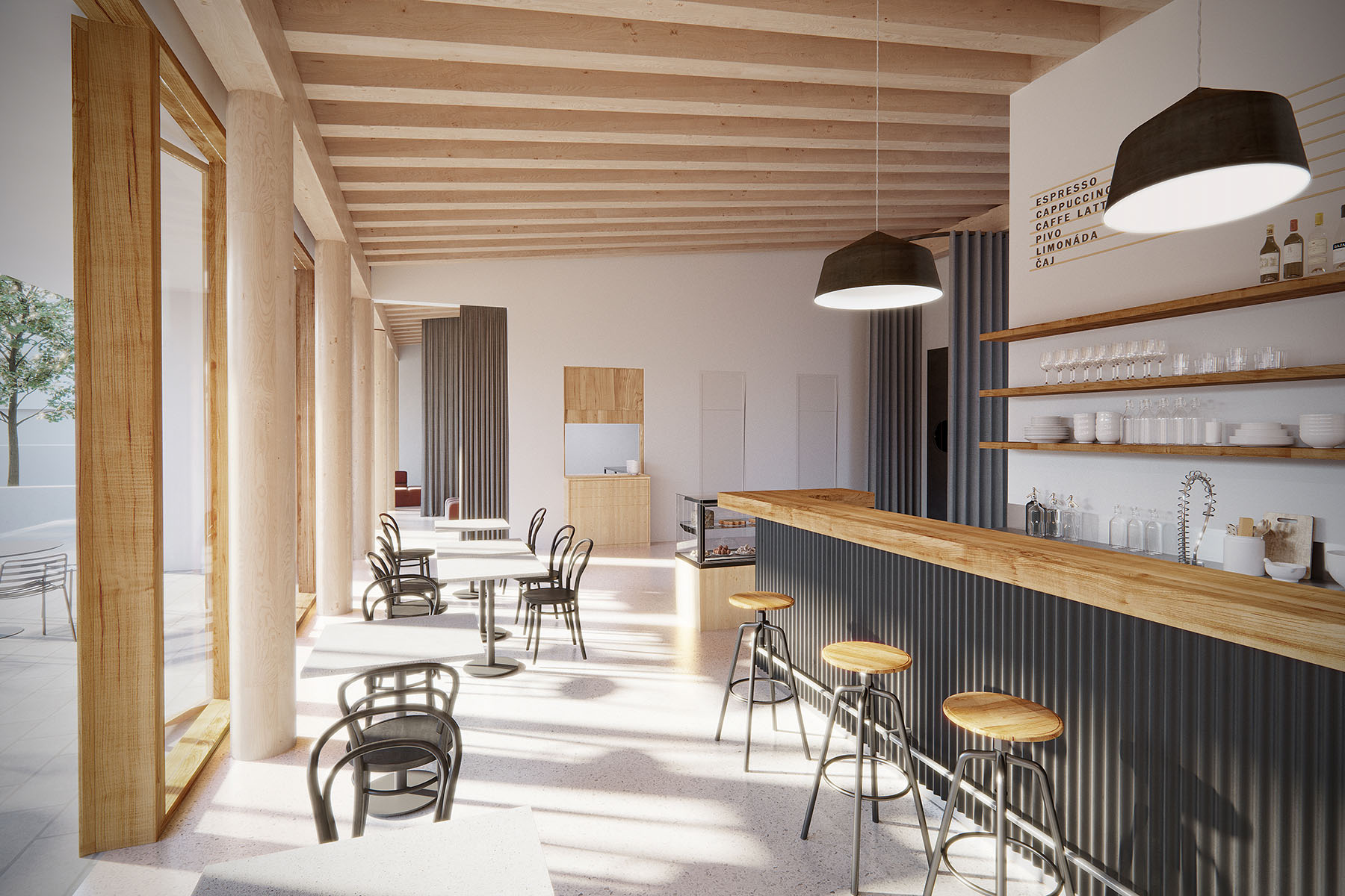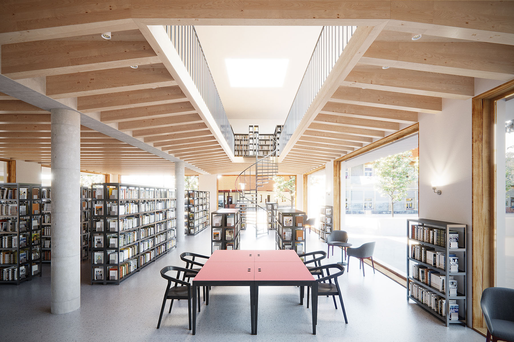 s dostavbou knihovny, kluboven a nové kavárny