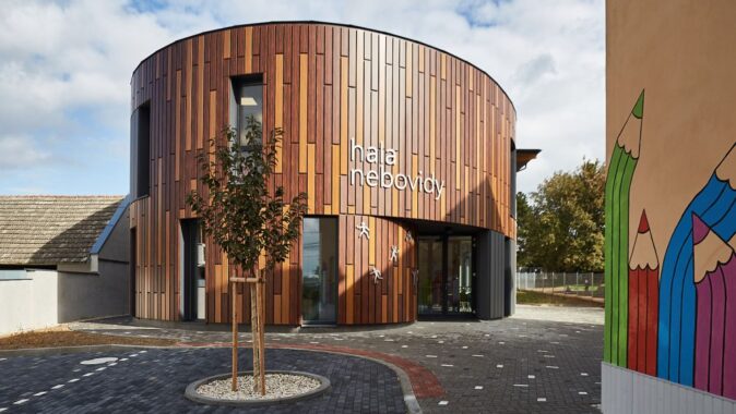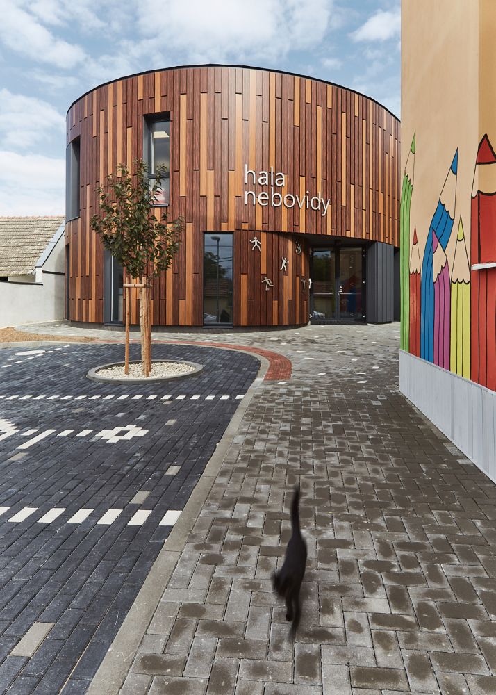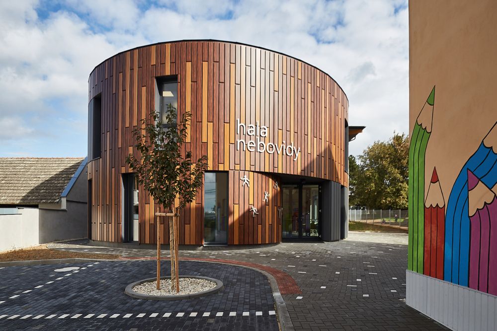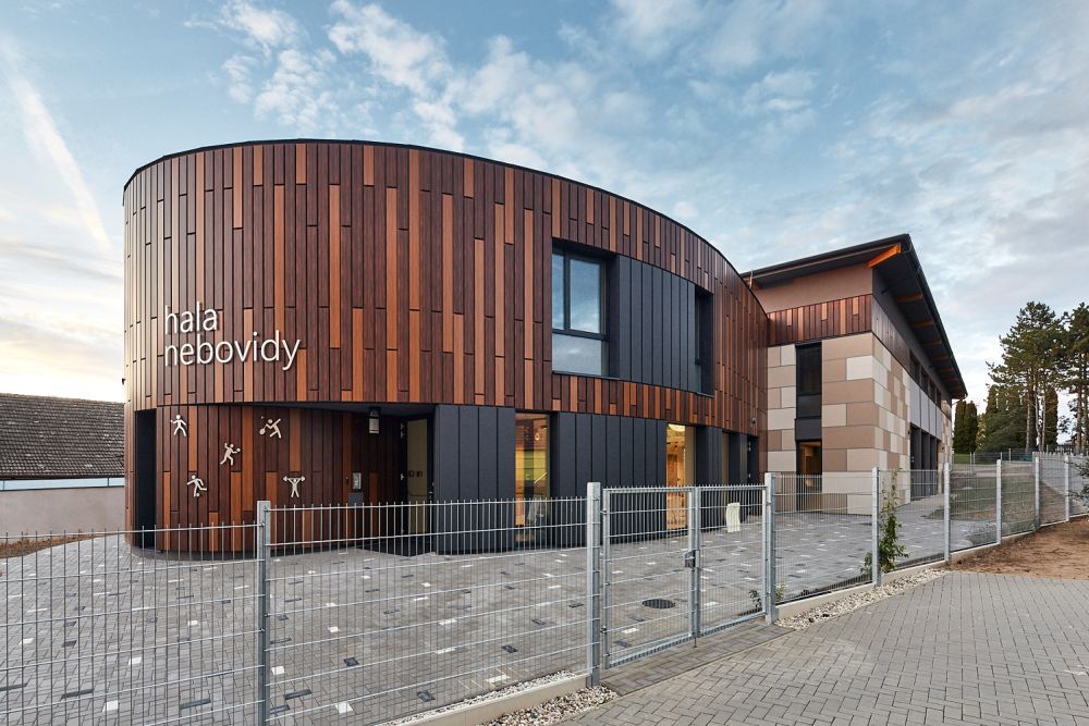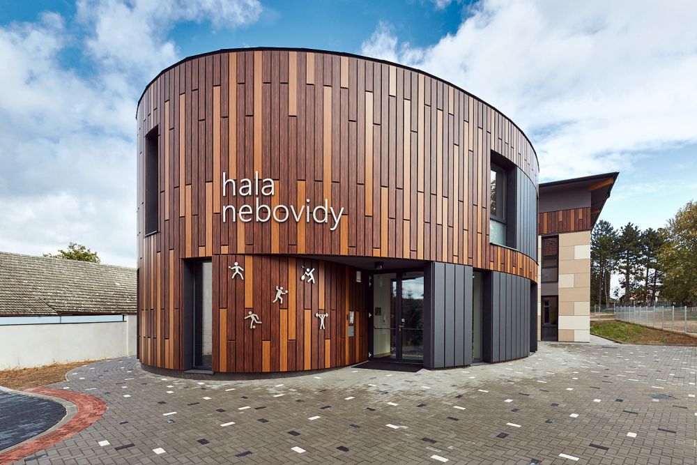 Obec Nebovidy potřebovala prostory pro pořádání kulturních a sportovních akcí. Úzký a protáhlý pozemek, který se nalézá v centru obce vedle mateřské školy a její krásné zahrady byl pro architekta výzvou. Odstupem od uliční čáry bylo budově školky ponecháno dominantní postavení, zároveň tak vznikl vstupní předprostor pro halu a otevřel se průhled do zahrady.