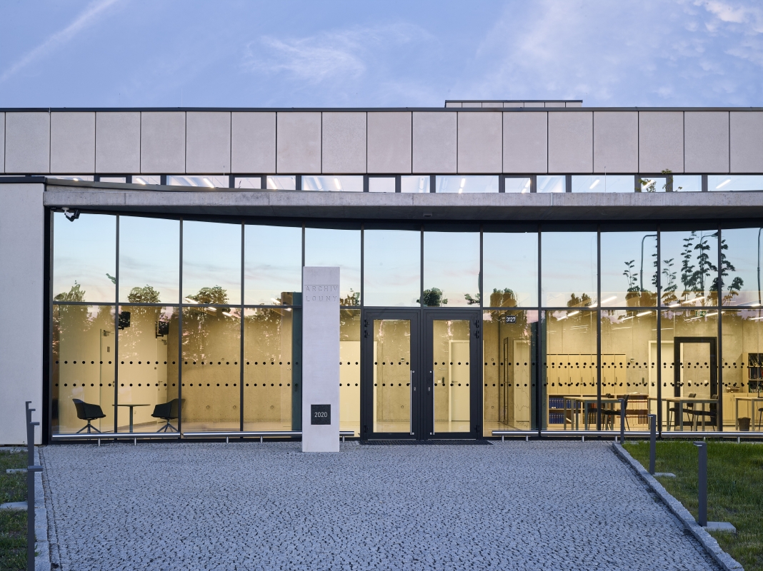 Budova archivu je navržena jako soubor zářezů do svažitého terénu pozemku. Jedná se o čtyři podlouhlé hmoty o různé výšce a délce. Každá hmota nese jinou primární funkční náplň a celý komplex se postupně zužuje směrem k jihu souběžně s tvarem pozemku. V polovině je mezi hmoty vloženo zahradní atrium pro přivedení nepřímého světla do pracovních prostor archivářů a kultivaci pracovního prostředí výhledem do vegetace.