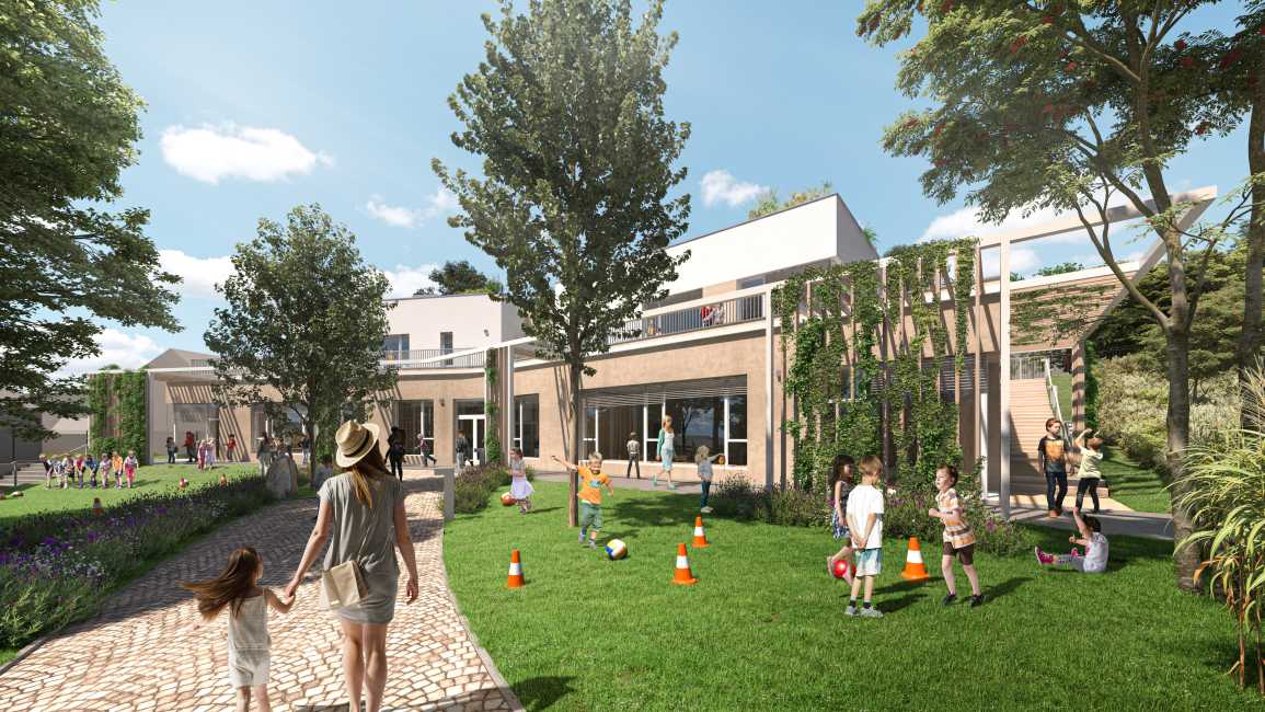 Na pozemku školky se nachází mnoho dřevin, které budou po dendrologickém ošetření zachovány. Projekt tedy pracuje s přírodou, která už na místě je, a pouze do ní vnáší nový moderní prvek, který do stávajícího prostředí hezky zapadne. Z přírodních materiálů bude i několik dětských hřišť a prolézaček. V průběhu studie byl projekt konzultován s odborem školství MČ Prahy 12.