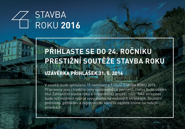 Prestižní soutěž Stavba roku 2016, která již otevřela svůj 24. ročník, je v plném proudu a těší se stále narůstajícímu počtu přihlášených staveb. Již nyní je zřejmé, že se bude jednat o skvělé klání napříč všemi obory stavebnictví. Na soutěže najdete přihlašovací formulář, tedy propozice soutěže, přihlášku a registraci pro případ, že jste své přihlášky zatím nestihli podat.