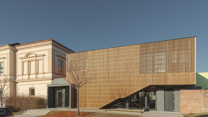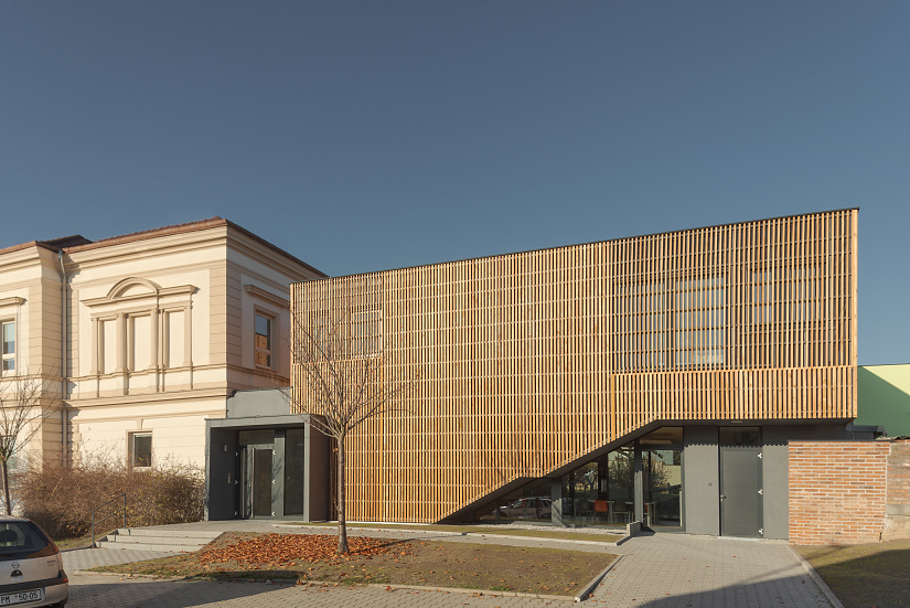 kvalitní moderní přístavba školní družiny v Plzni-Újezdě prezentuje