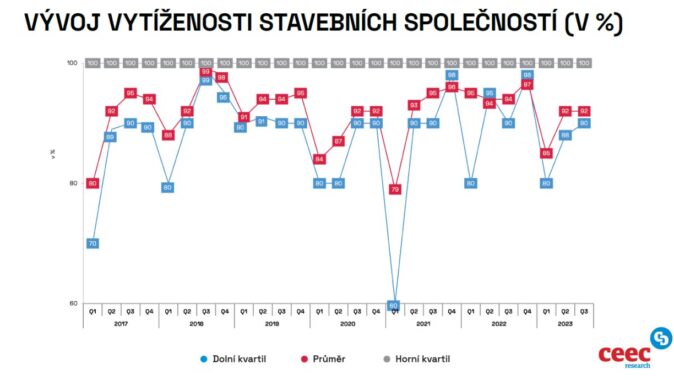 Kapacity stavebních společností pokračují stále na poměrně vysoké úrovni vytížení (92 %). Vysoká kapacitní vytíženost je v této době, kdy jsou predikce směřovány spíše směrem dolů, dána několika faktory. Jedním z faktorů jsou kontrakty, které byly nasmlouvány z dřívějších let, nebo nedostatek pracovní síly, kde i přes snahu stavebních společností na pracovním trhu není možné sehnat kvalifikovanou pracovní sílu, a tím rozvíjet své kapacity. Některé stavební společnosti v době ekonomické nejistoty do vlastních kapacit vysloveně odmítají investovat.