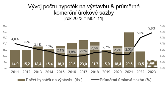 „Na zásadní rozhýbání výstavby si však musíme počkat do začátku roku 2025. Hranice hypotečních úrokových sazeb by se mohla pohybovat pod 3,5 %. Poté bychom se vrátili k průměrnému objemu hypoték na výstavbu z let 2011–2020, kdy jich bylo běžně sjednáno 1 500 měsíčně, ročně se náběr pohyboval v průměru okolo 18 tisíc,“ uzavírá situaci Kamil Jeřábek.
