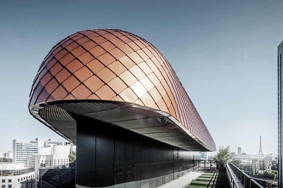 To nejlepší a nejkrásnější ale Černá perla nabídne teprve tehdy, když budete pohledem pátrat na jejím vrcholu. Ten korunuje impozantní a velkoryse řešená střecha, vyrobená z PREFA falcované šablony 29×29. „Věděl jsem, že hliník je úžasný materiál, který lze vyrobit snad v jakékoli barvě. K černé se mi nejvíce hodila měděná, která vypadá neotřele a noblesně. A tuto noblesu si díky kvalitě produktů PREFA uchová i v následujících desetiletích. Protože společnost nabízí čtyřicetiletou záruku,“ uzavírání vyprávění architekt, který díky recyklovanému hliníku vytvořil v centru Paříže jednu z těch budov, které se při návštěvě francouzské metropole rozhodně vyplatí vidět.