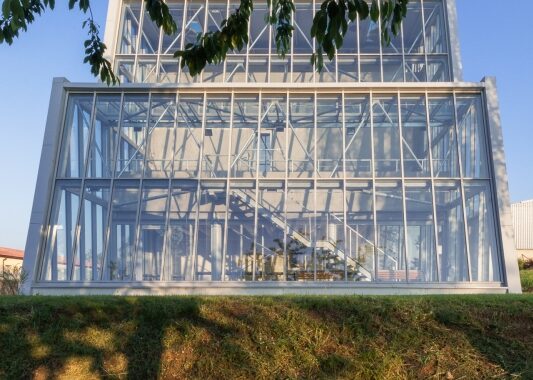 skleník s pěstebními dílnami, a prostor pro výuku navrhování