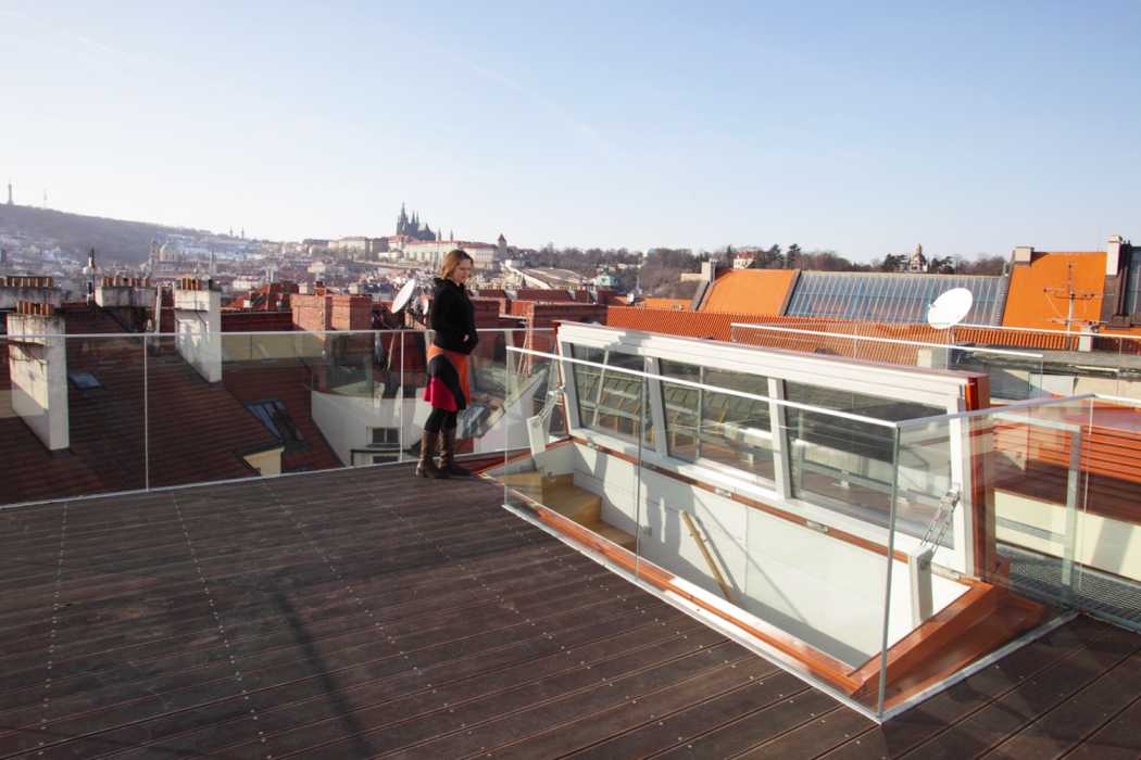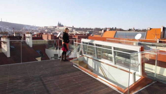 Terasa na střeše, střešní záhony, městské včelaření, relaxační zóny mezi střechami. Krásné využití volného a svobodného prostoru mezi střechami má v dnešní době mnoho zajímavých podob. „Mám takové prostory rád, cítím se tam dobře. Je mým pracovním koníčkem vyvíjet a vyrábět prosklené střešní výstupy. Zavádíme na trh pojem STŘEŠNÍ DVEŘE. V žertu uvádím, že takto zpřístupněné prostory nadchnou romantiky i developery. Jedni si to užijí a druzí mají atraktivní prvek do projektu,” říká Jakub Formánek.