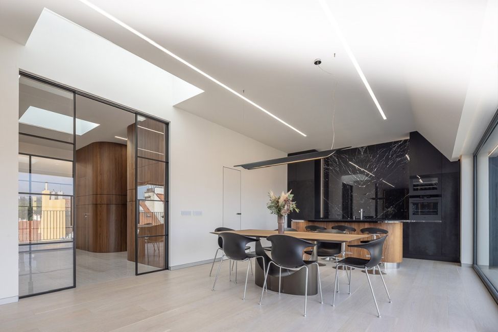 přáním bylo vytvoření exkluzivního prostoru ve stylu funkcionalismu s moderními