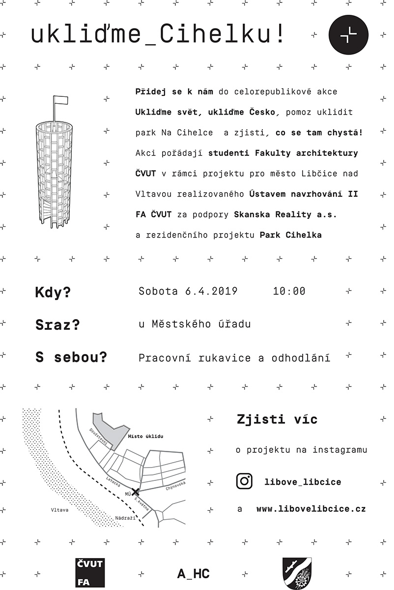 Studenti ateliéru Hlaváček – Čeněk Fakulty architektury ČVUT se o víkendu připojí k celorepublikové akci Ukliďme svět, ukliďme Česko. Úklidem parku Cihelka zahájí projekt, který dovedou až k realizaci vlastníma rukama, do června zde pro obyvatele Libčic postaví vyhlídkovou věž. Projekt je realizován za podpory Skanska Reality a.s. a rezidenčního projektu Park Cihelka.