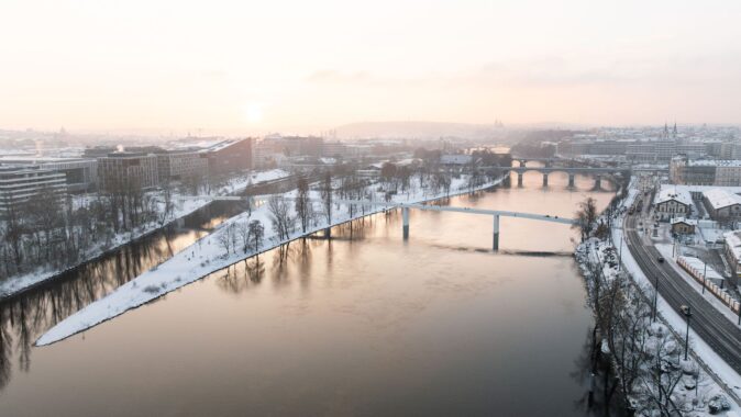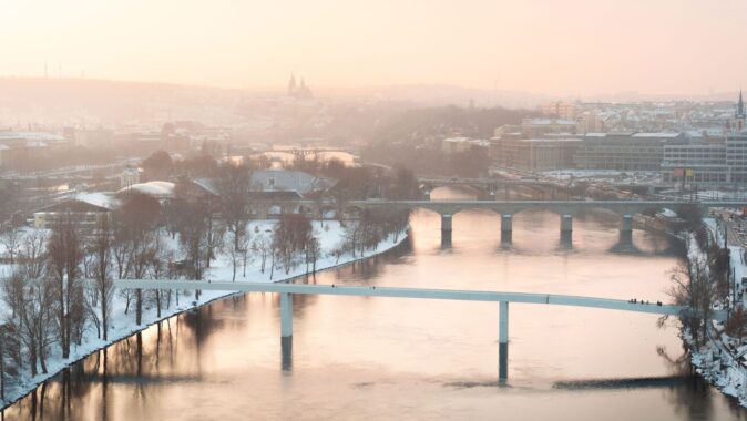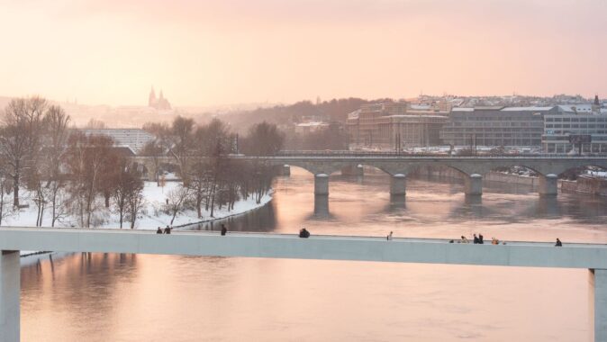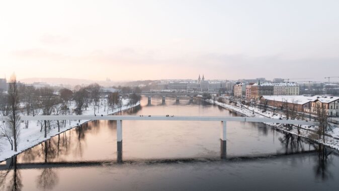 nejde do výšky, nebrání chodcům a cyklistům v pohledech na město, vodu a