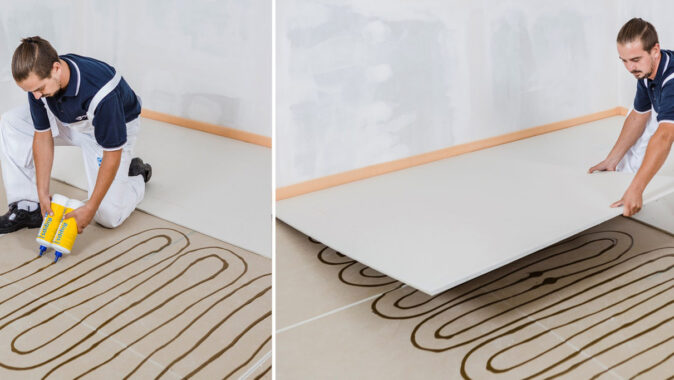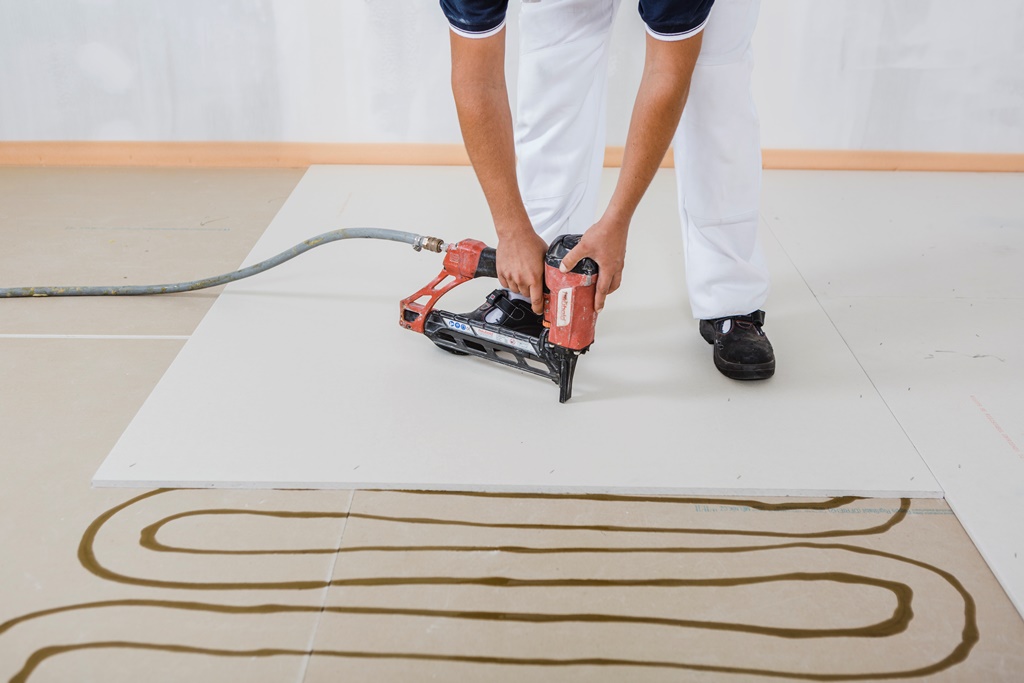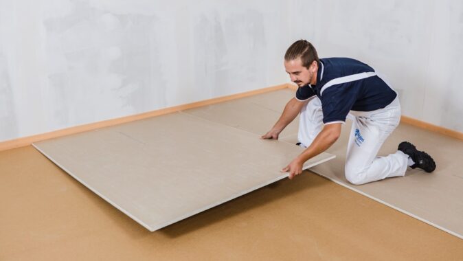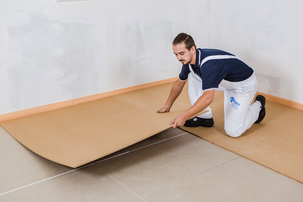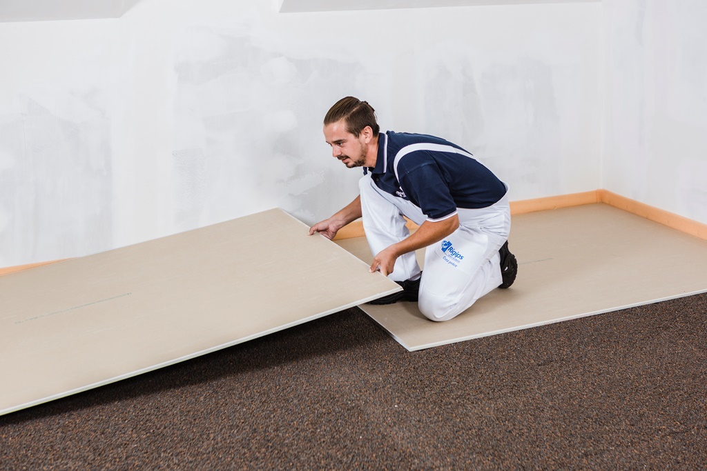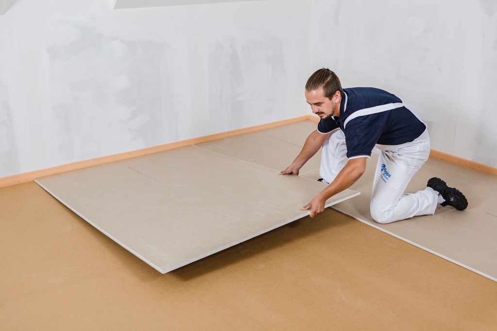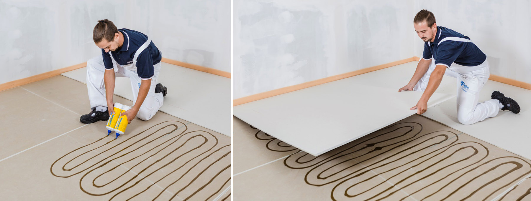 Suché podlahy tvoří dvě celoplošně slepené vrstvy speciálních sádrokartonových konstrukčních desek RigiStabil společnosti Rigips. Mohou být pro zvýšení stavebně-technických vlastností doplněny podkladní izolační vrstvou (suchý vyrovnávací podsyp, dřevovláknitá deska, stabilizovaný polystyren, minerální izolace). Podlahy RigiStabil jsou vhodné i pro instalaci teplovodního či elektrického podlahového topení.