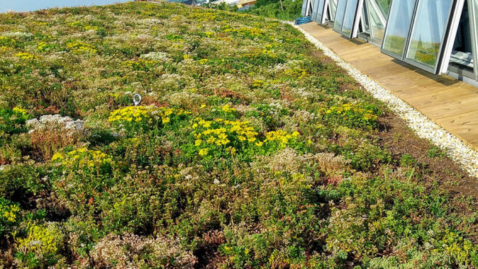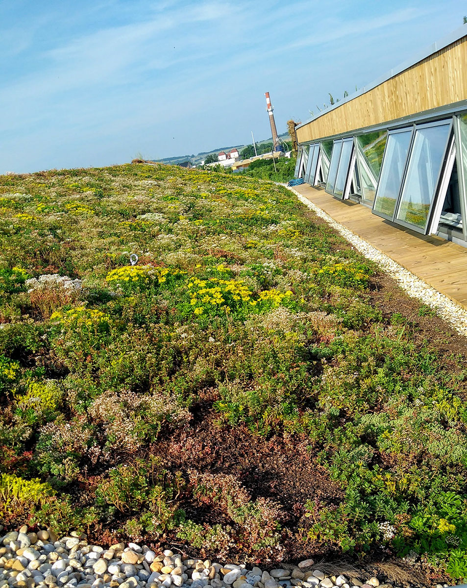 •           Teplota zelené střechy je až o 60 % nižší než povrch střechy s asfaltovou folií.