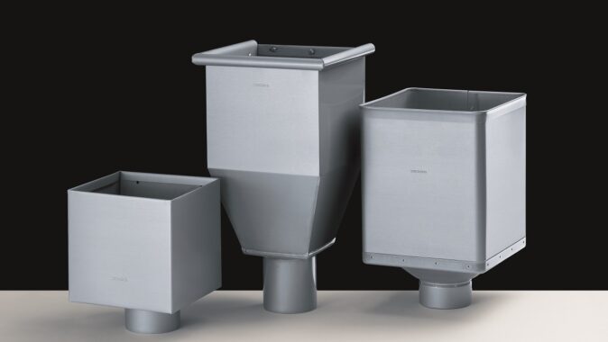 Široký sortiment prvků odvodňovacího systému RHEINZINK v půlkulatém i