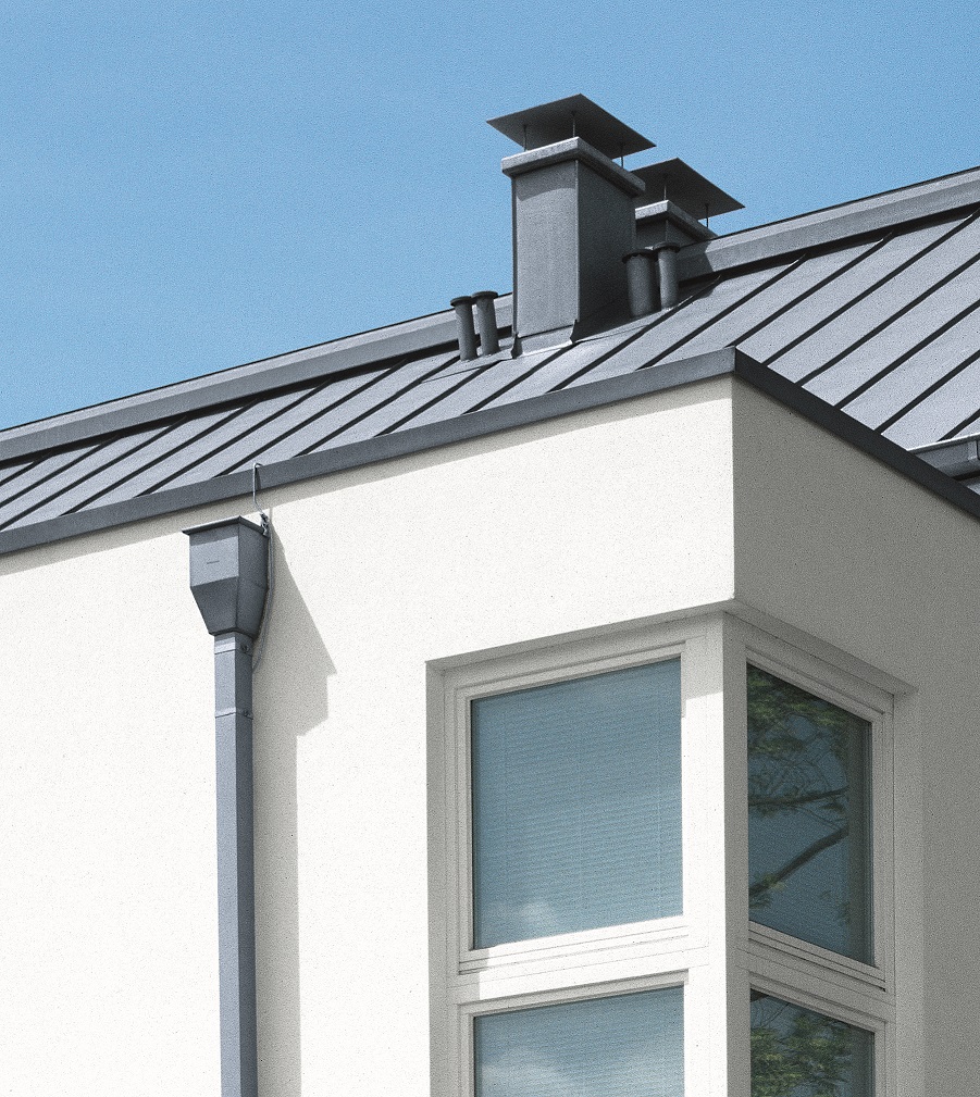 Odvodňovací systém z přírodního titanzinku navíc podle potřeby s objektem