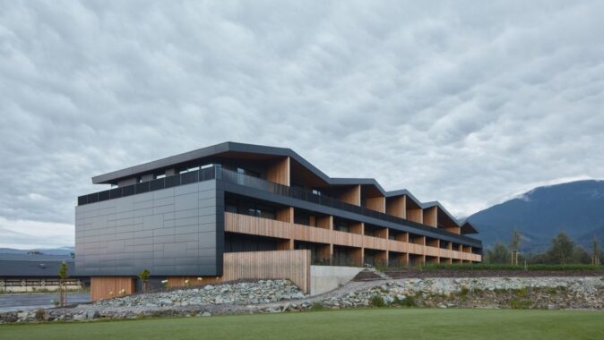 Nové objekty jsme umístili do tvaru písmene L, nacházejí se v přibližné poloze bývalých utilitárních staveb. Respektují tak strukturu i členění místa. Stávajícího urbanismu je využito také pro umocnění výhledů z apartmánů. K pokojům v typických podlažích náleží velkorysé lodžie, které jsou výrazným architektonickým prvkem na fasádách. To je ještě zdůrazněno ustoupením suterénního patra, což nechává vyniknout hlavnímu objemu stavby. Podkrovní část je řešena jako ustoupená s výrazně přesahující příčně zalamovanou střechou. Vizuálně silný architektonický prvek ve střešní rovině je zkonstruovaný podle reliéfu okolní hornaté krajiny.
