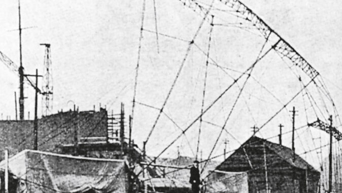 lze rozpoznat i na konstrukci, dnes již bohužel neexistující, 180 m vysoké