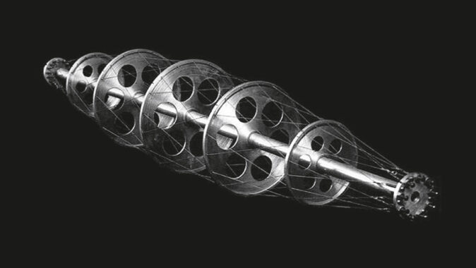 válcový tvar, máme před sebou jeden ze „systeme funiculaire de révolution“, jimiž