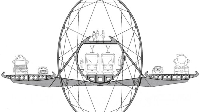 oválnými půdorysy jsou dnes konstrukce založené na principu drátěného kola již dávno