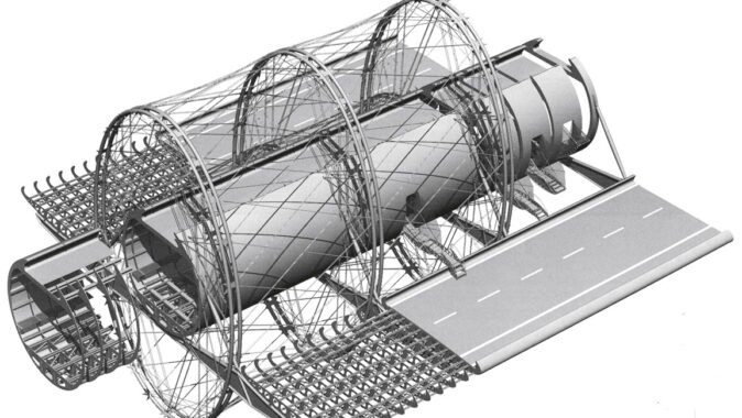 zapomenutý, francouzský inženýr Robert Le Ricolais. (Obr. 4 a 5) Stejný systém