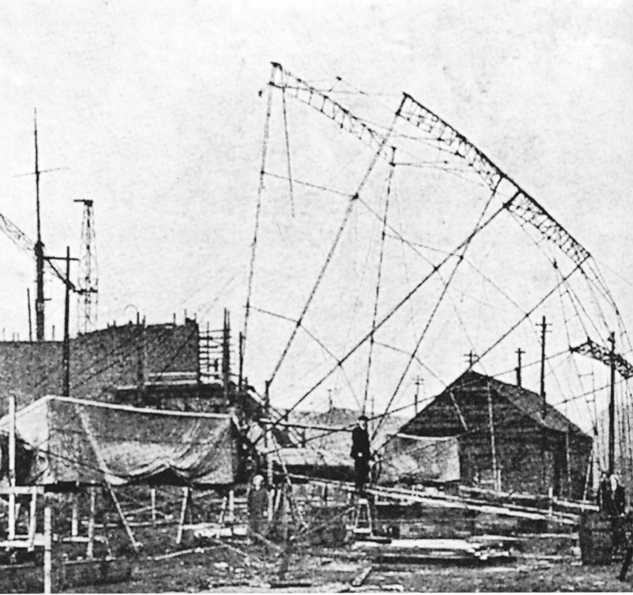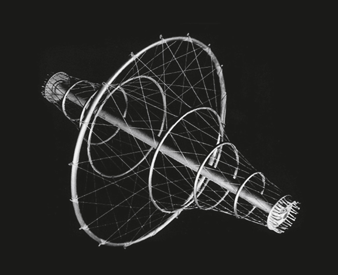 lze rozpoznat i na konstrukci, dnes již bohužel neexistující, 180 m vysoké