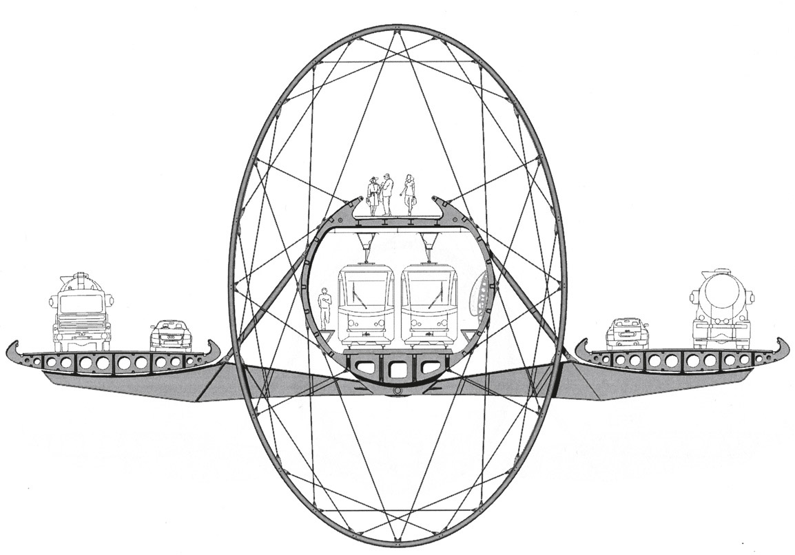 oválnými půdorysy jsou dnes konstrukce založené na principu drátěného kola již dávno