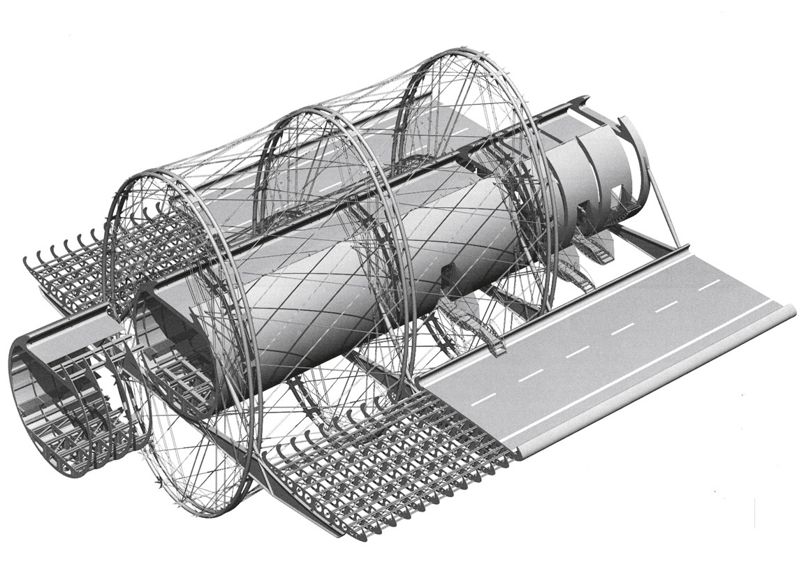 vyztužení příhradových polí v podélném a radiálně ztužených kruhů v příčném