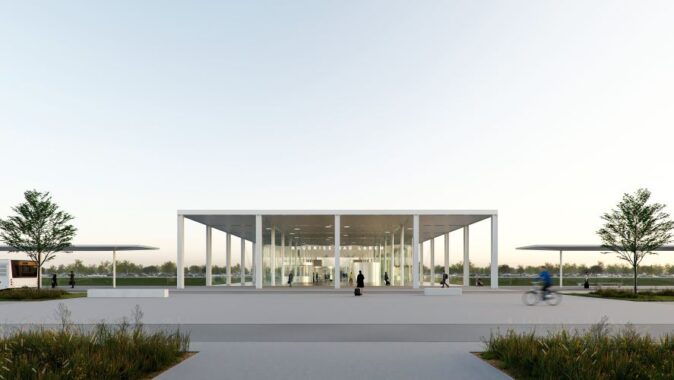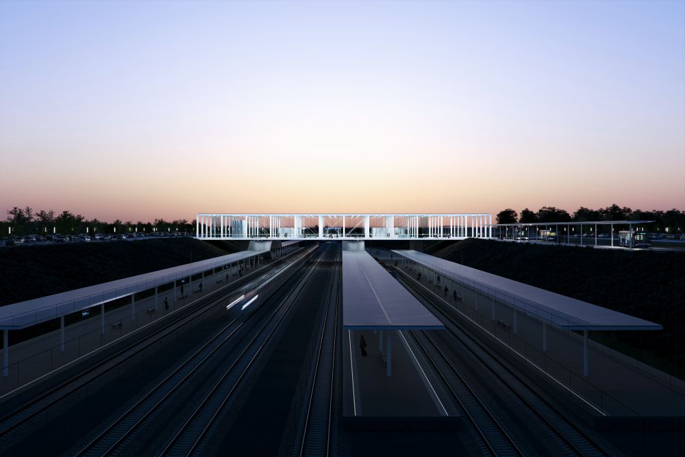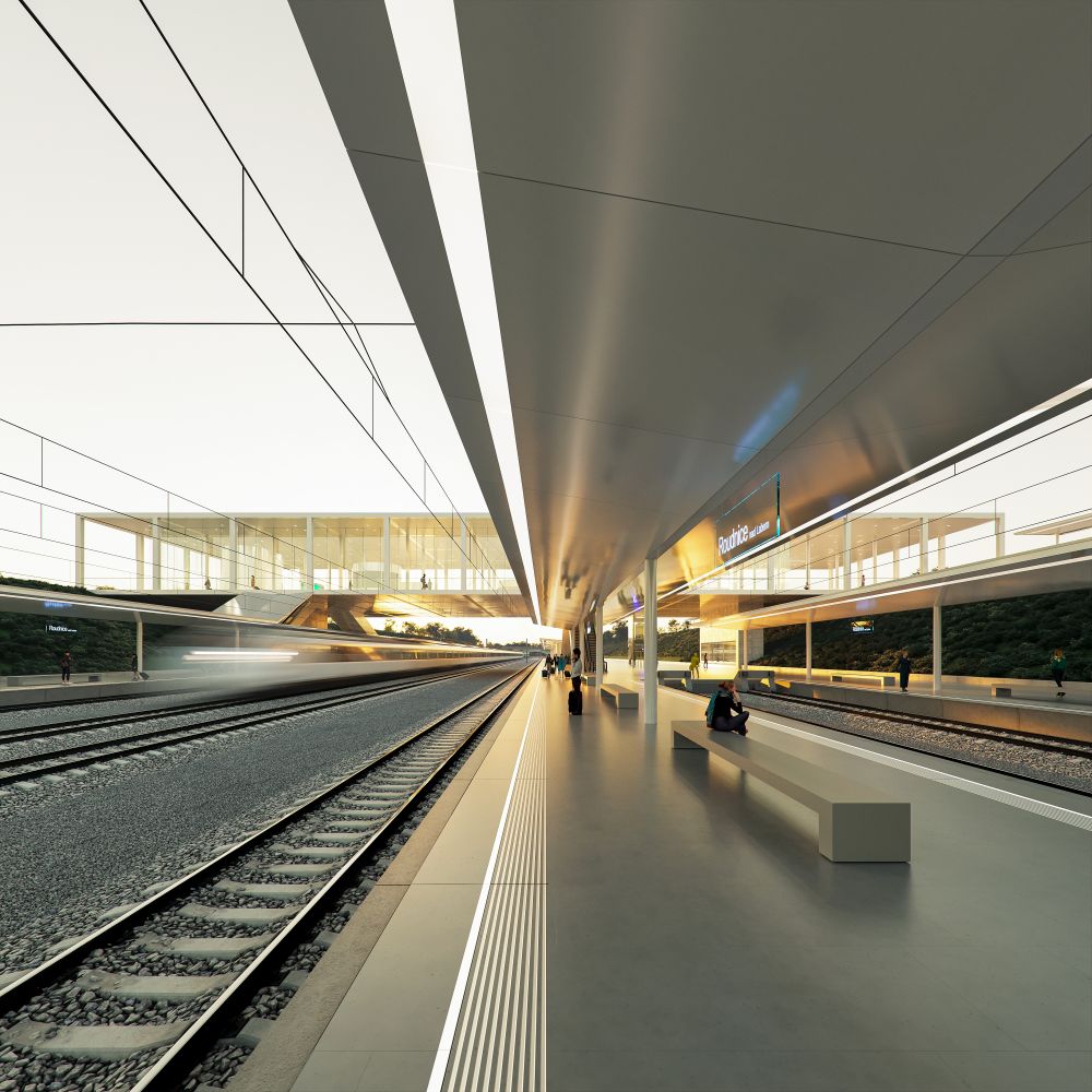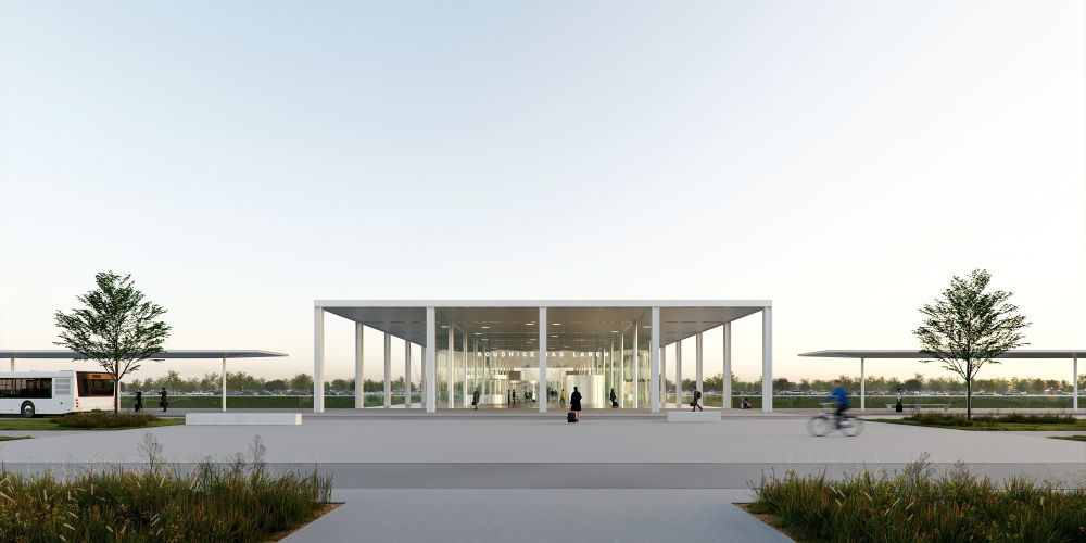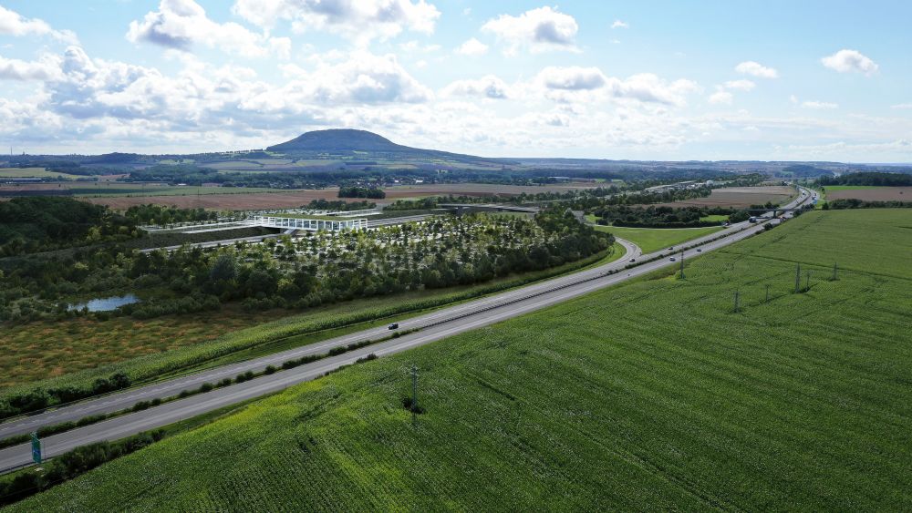 Nový terminál by měl udržitelným způsobem vstoupit do krajiny po Řípem. Autoři proto zvolili pro odbavovací halu lehkou a transparentní mostní konstrukci, která se nebude pohledově příliš uplatňovat.