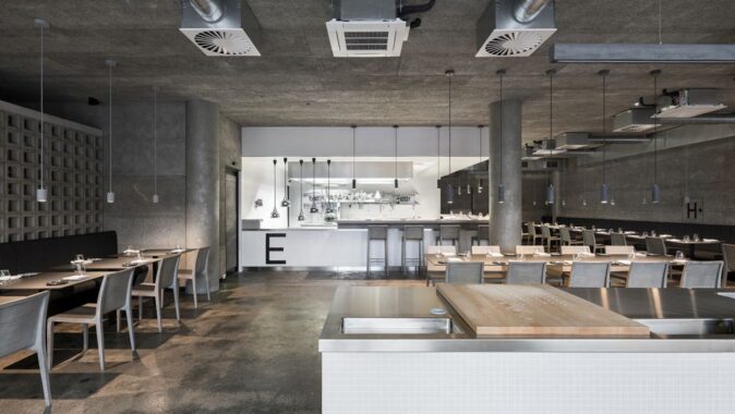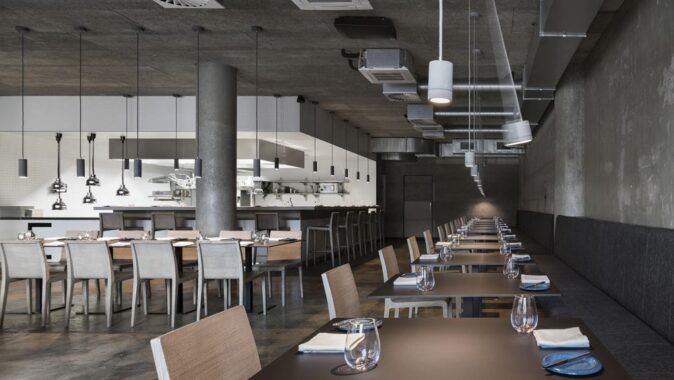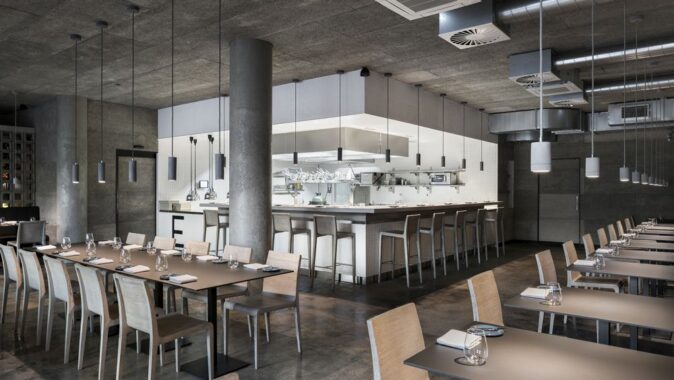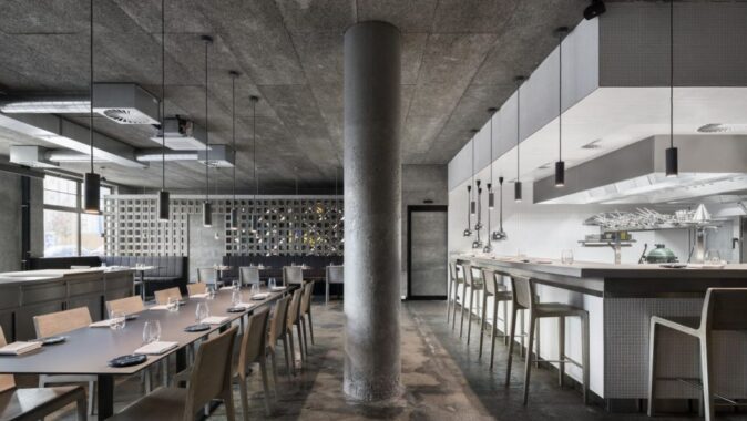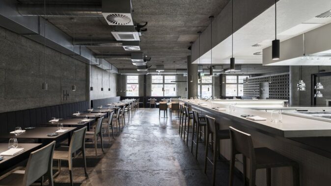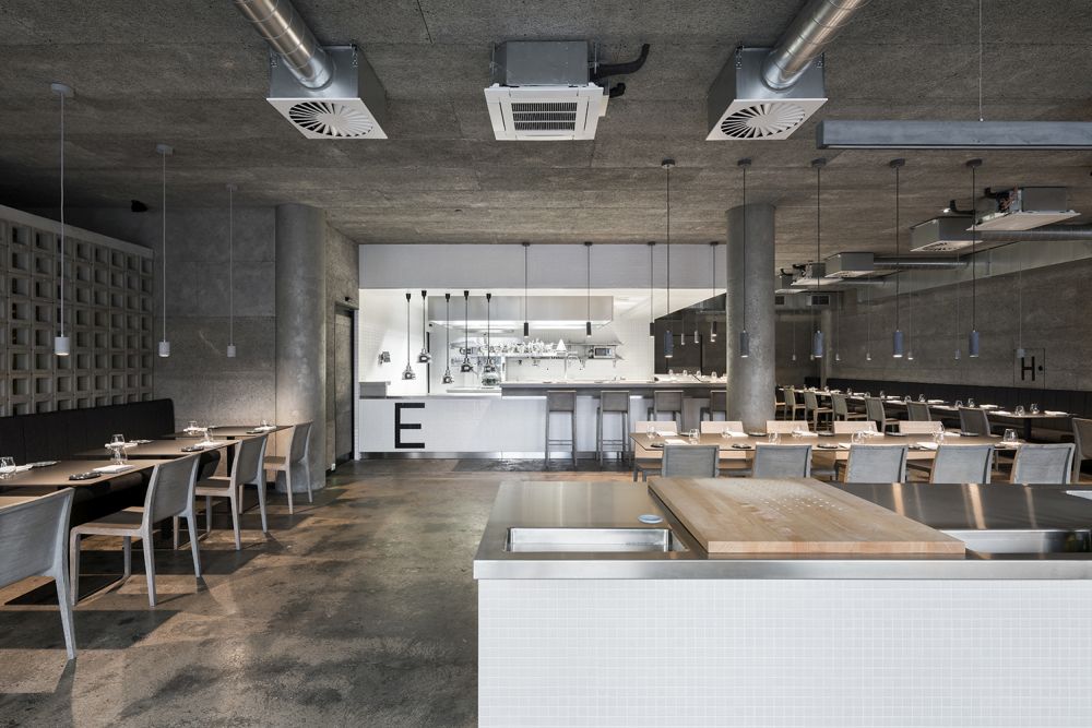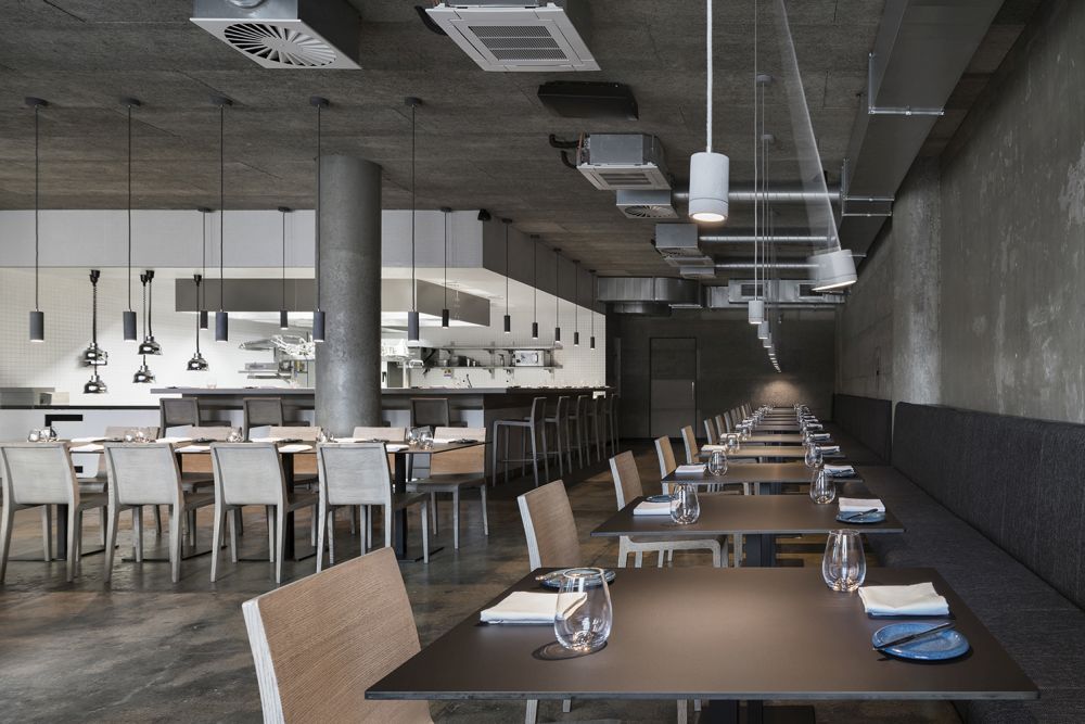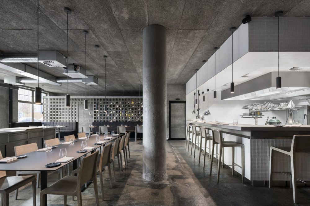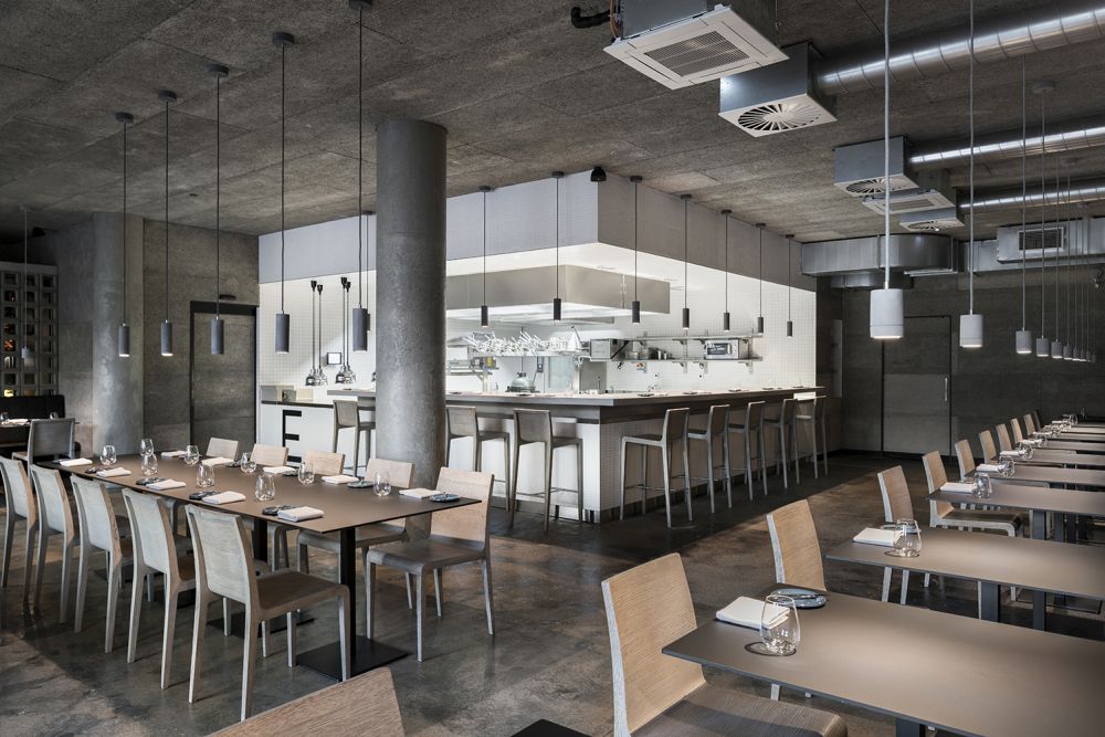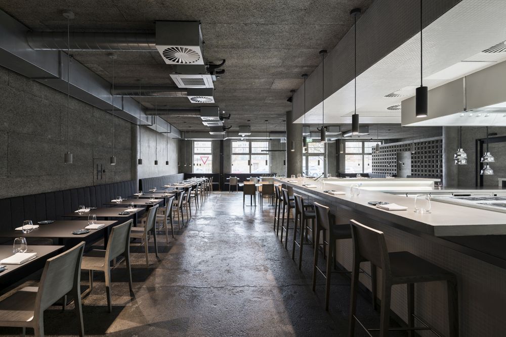 jádrem kompaktního prostoru restaurace bez tradičního baru. Vysoké sezení po