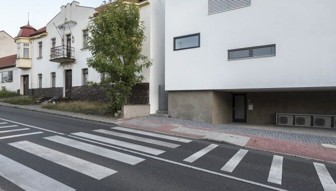Řadové rodinné domy jsou zasazeny do stávající zástavby podél ulice, na východní straně k nim přiléhá trojice domů původní řadové zástavby, která pevně drží uliční čáru. Na západní straně pozemek sousedí s cestou na bývalý hřbitov při Oboře Hvězda, který k parcele přiléhá na jihu. Za touto cestou se nachází expresivněji pojatá rodinná vila, která je od uliční čáry výrazně ustoupena a vygradována k nárožní hmotě.