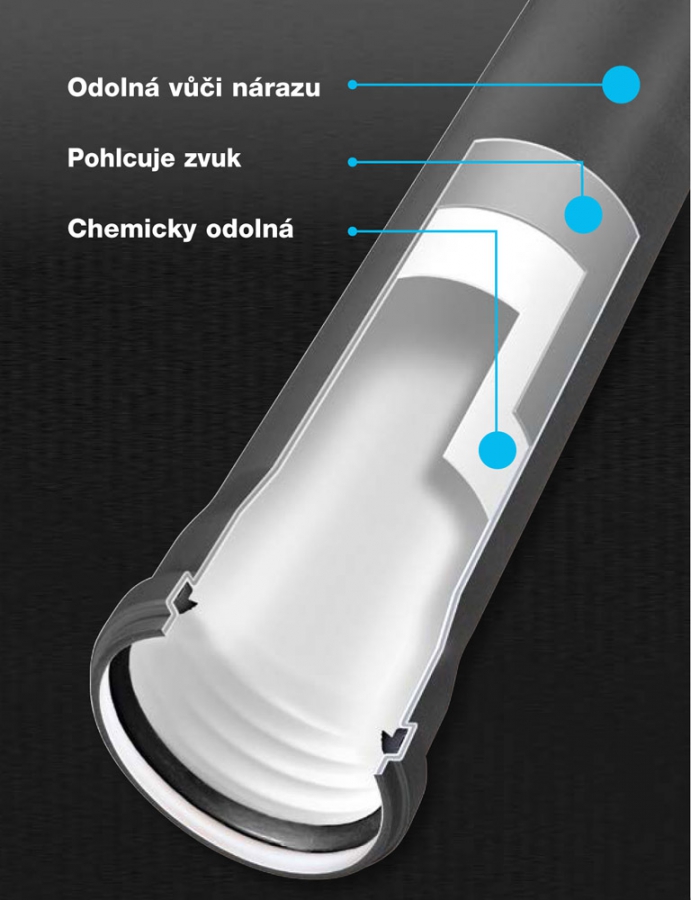 nabízí ještě lepší akustické vlastnosti. Trubka třívrstvé konstrukce