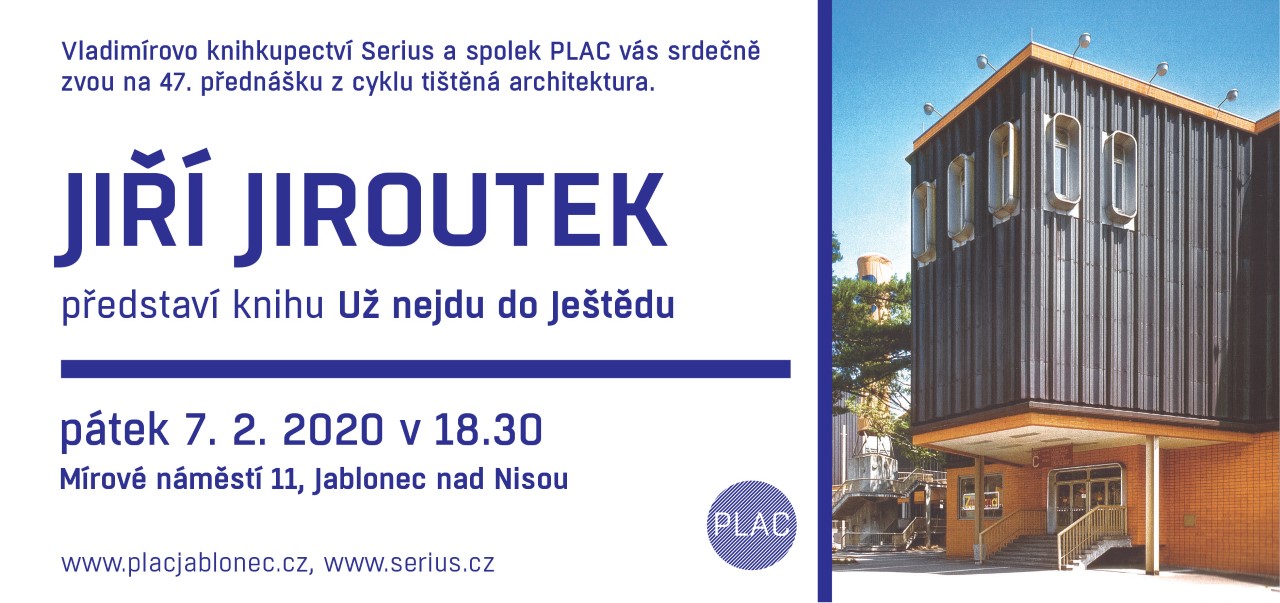Spolek PLAC Jablonec v pátek 7. února 2020 pořádá již 47. přednášku z cyklu Tištěná architektura, v 18.30 ve Vladimírově knihkupectví Serius.