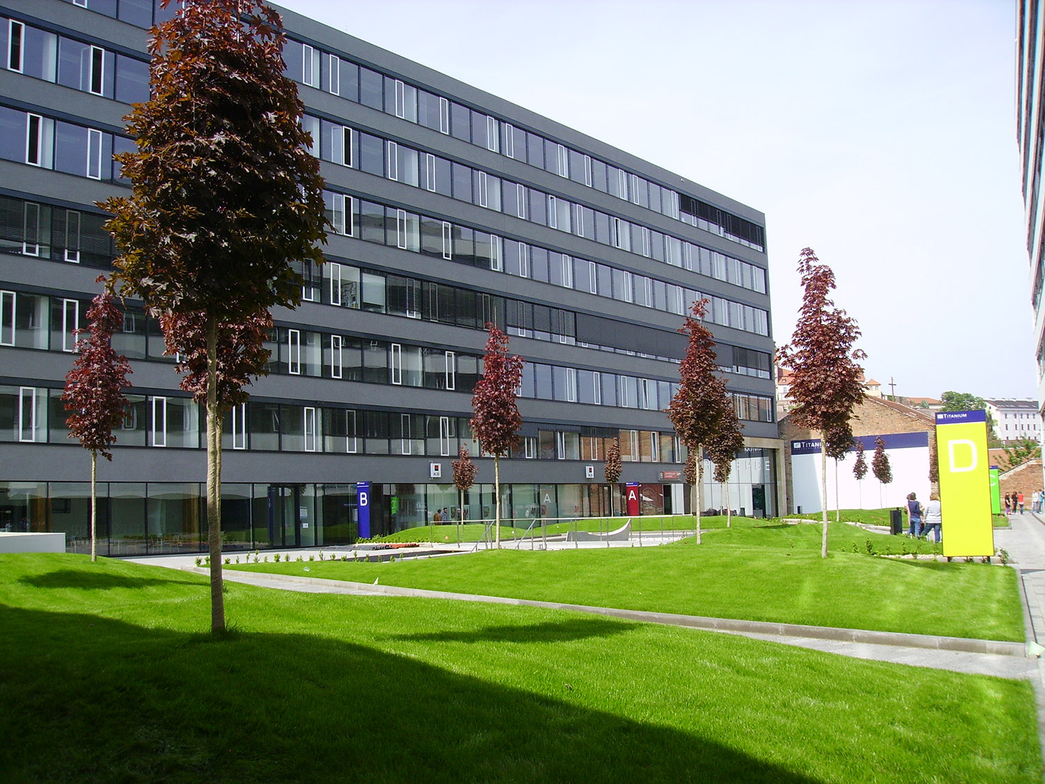 Na prostranství bývalé tržnice Malá Amerika v Brně na Nových Sadech vyrostly koncem roku 2013 dvě nové, moderní administrativní budovy – Titanium. Obě z nich i velké prostranství mezi nimi pod sebou ukrývají rozlehlou podzemní garáž. Běžný návštěvník ani nezpozoruje, že park, který zde vznikl, je vlastně střešní zahradou. Neuvědomí si, že trávník, keře ani vzrostlé stromy, které jsou zde vysazeny, nikdy neproniknou kořeny do rostlého terénu a že vše, co se zde tváří jako normální park a zeleň, je vlastně cosi jako obří truhlík. Tím je také dáno, že to, co platí na běžném terénu, neplatí pro střešní zahradu. Kořeny si nemohou samy sáhnout pro vodu do hlubin Země, takže v suchém období by z krásného parku byla bez pomoci automatické závlahy brzy poušť. Pokud by naopak přebytek dešťové vody nemohl spolehlivě odtékat, trpěla by vegetace podmáčením. Proto je nutné, přistupovat k realizaci zodpovědně už ve fázi návrhu, eliminovat veškerá rizika a při definitivním řešení sladit představu projektanta a přání investora s reálnými možnostmi.