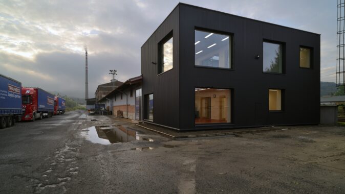 Po úvahách o vestavbě firemního zázemí do prostoru skladu jsme se posunuli k záměru oživit nedávno špatně rekonstruovaný, nyní ladem ležící domek při krátkém čelním štítu skladu.