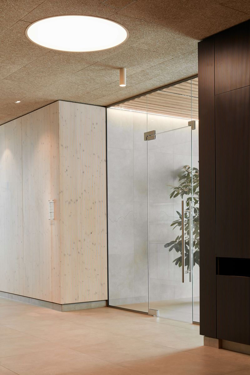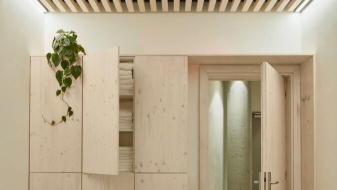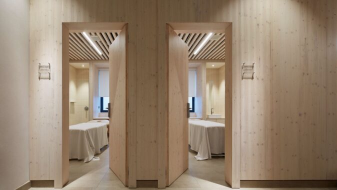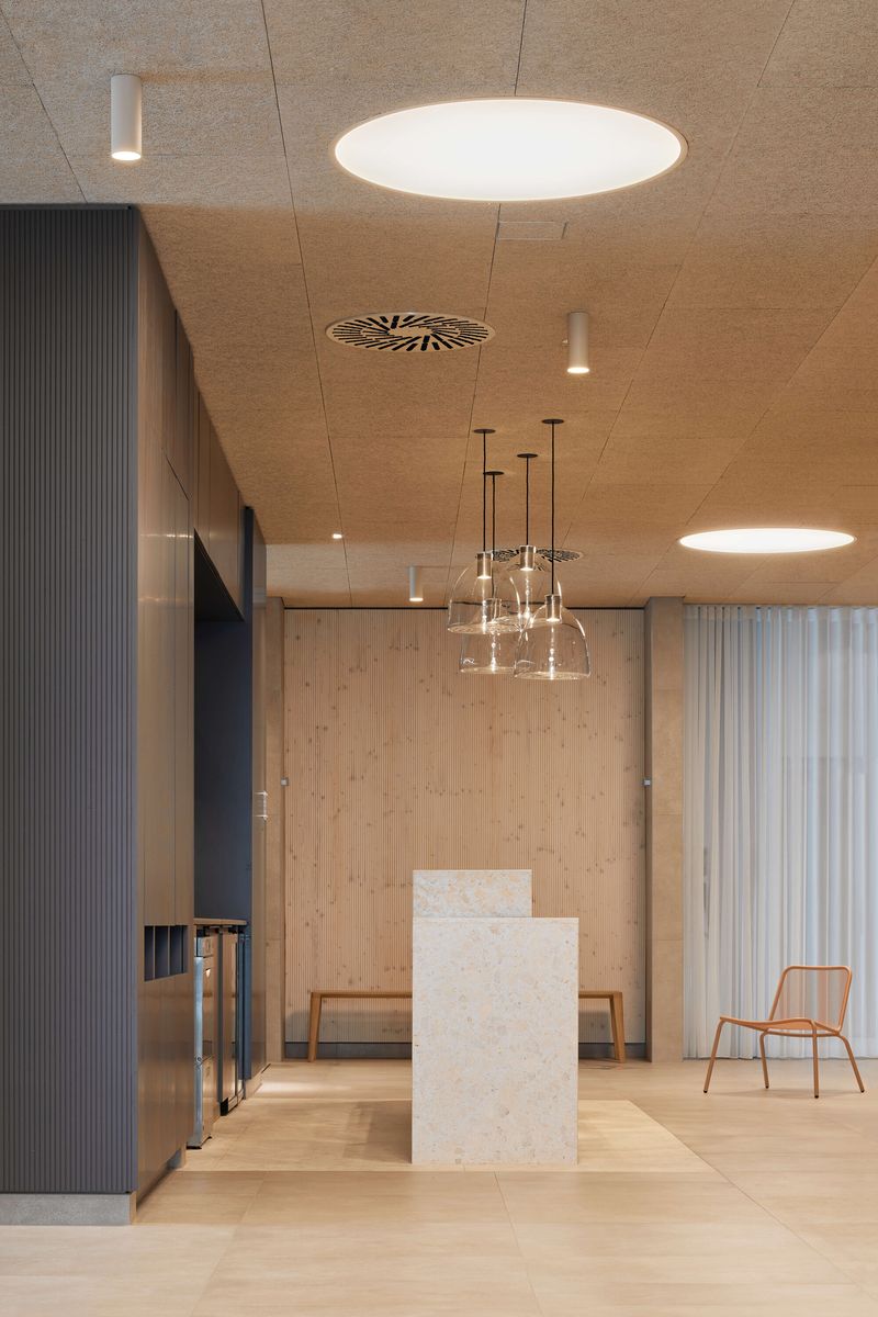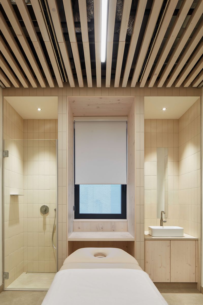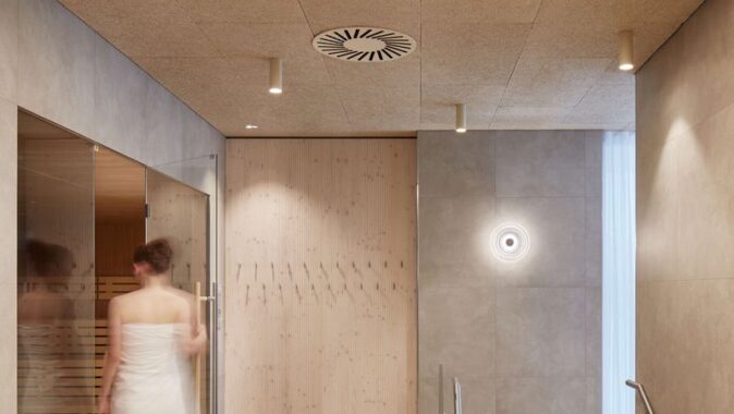 Budovou procházejí podhledy z Heradesignu různých barev a systémů zavěšení, zajišťující akustickou i estetickou pohodu. Masérny jsou vybaveny vestavěnými truhlářskými prvky ze smrkové biodesky. Světla materiálově navazují na skleněné příčky a zábradlí, v kontrastu se dřevem a tenkými závěsy dotváří provázanost mezi přírodními saunami a křehkou historií lázní.