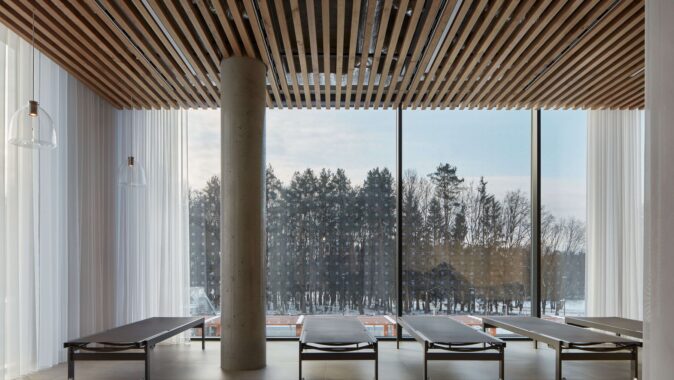 Nová budova třeboňských lázní Aurora potřebovala jasný prostor s logickou orientací, využití přírodních a autentických materiálů, respektování historické hlavní budovy lázní a především intenzivní zapojení architektů.