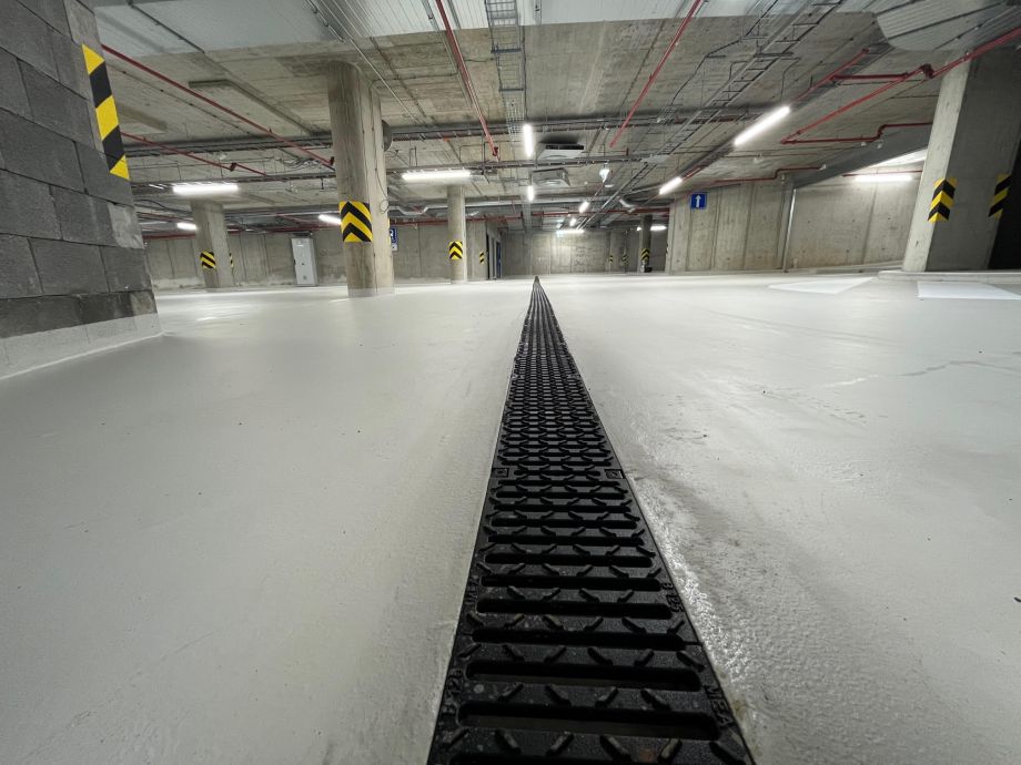 MEA řešila odvodnění rozsáhlých podzemních garáží. Projekční tým MEA byl při návrhu limitován hloubkou i šířkou připravených drážek v podlaze. Specialisté zvolili nízké žlaby MEARIN PLUS 150 F, které mají výšku pouze 75 mm. Instalace byla provedena během 2 měsíců.