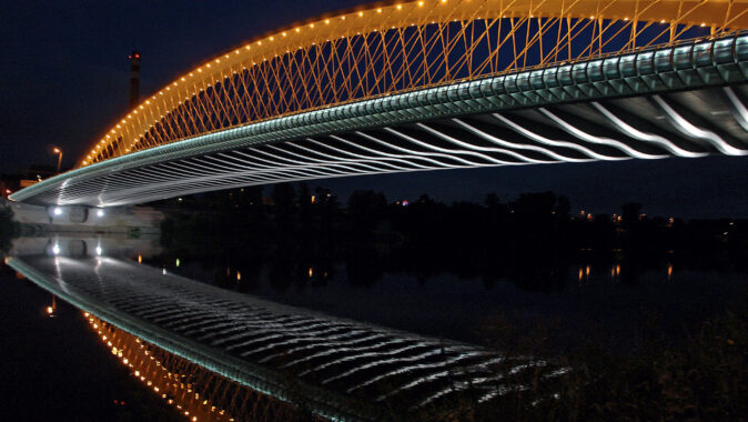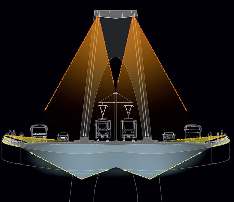Světlo je čtvrtý rozměr architektury a nově otevřený Trojský most je toho tím nejlepším příkladem. Ta pravá doba představit osvětlení mostu nastává s příchodem soumraku. Lze tu v té době potkat fotografy, kteří hledají to pravé světlo pro svůj snímek. To pravé světlo ale již našli konstruktéři mostu z atelieru Koucký architekti a je součástí projektu od prvních návrhů. Již tenkrát před osmi lety, kdy se začínalo s projektováním, bylo jasné, že světlo a osvětlení mostu bude mít svoji nezastupitelnou úlohu. Jako zásadní se ukázalo rozhodnutí o čtyřech barevných rovinách světelného řešení, od barevně nejteplejší na oblouku, po barevně nejchladnější v osvětlení spodní části mostní konstrukce. Záměr pana architekta Kábrta jedinečně plní světelné řešení společnosti THORN, součásti ZUMTOBEL GROUP, navržené a realizované pod vedením pan Waltra Jagsche.