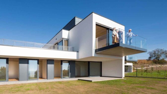 pokojů a jednoho víceúčelového obytného pokoje, je částečně zapuštěná do