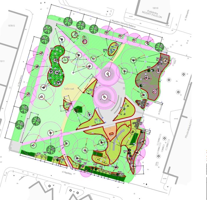 „Při výběru nových laviček a košů byl kladen důraz na jednoduchou údržbu, robustnost a nadčasovou estetiku. V centrálním prostoru pak bude umístěno decentní bodové osvětlení,“ doplnil náměstek primátora pro životní prostředí Aleš Boháč. „Celý sad bude doplněn o vhodnou parkovou zeleň (stromy, keře a živé ploty), nebudou chybět ani trvalkové záhony a luční louky,“ dodal náměstek Boháč.