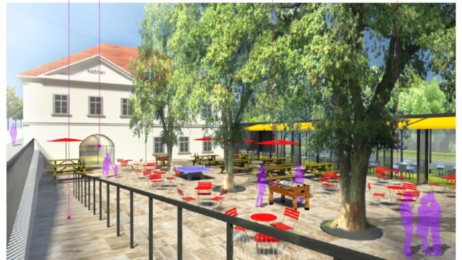 Studie se zabývá návrhem veřejných prostranství a přilehlých prostor k objektu Kaštan na pražském Břevnově. Dům u Kaštanu je původně hostinec, který vznikl pravděpodobně během přestavby Břevnovského kláštera. V roce 1955 musela být část budovy ubourána při výstavbě Bělohorské ulice. V devadesátých letech se po rekonstrukci z domu stalo kulturní centrum Prahy 6. Tomu dnes budova a její okolí vůbec neodpovídají. K objektu sice přiléhá rozměrná terasa, jenže zde chybí propojení s přízemím stavby, které by mohlo nabídnout kontakt napříč objektem nebo umístění zázemí restaurace. Chybí zde odbytová plocha, která by umožnila celoroční provoz kavárny nebo restaurace a zároveň odclonila hluk z Patočkovy ulice. Na terasu není bezbariérový přístup, park za Kaštanem je tmavý a nepřitažlivý. V ulici Bělohorské chybí stromořadí, které by zútulnilo velkou asfaltovou plochu, ve špici území je zpustlý parčík s rozpraskanými asfaltovými chodníčky a nevyužitý trávník sevřený dvěma dopravně velmi zatíženými ulicemi.