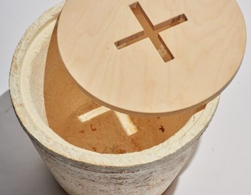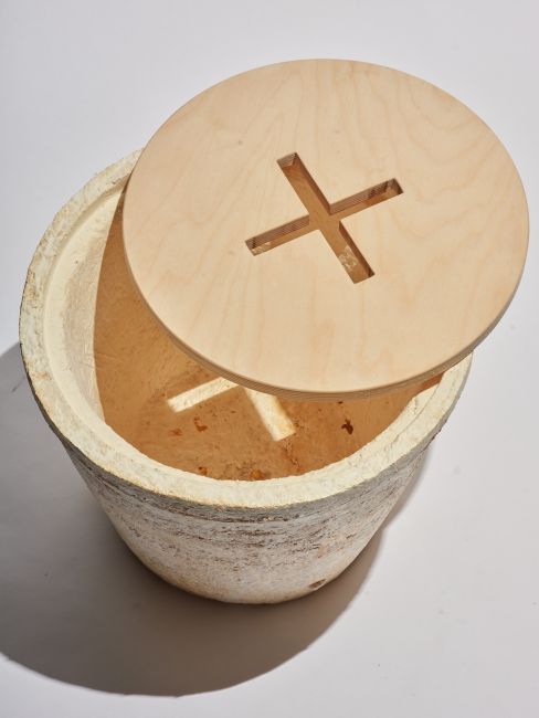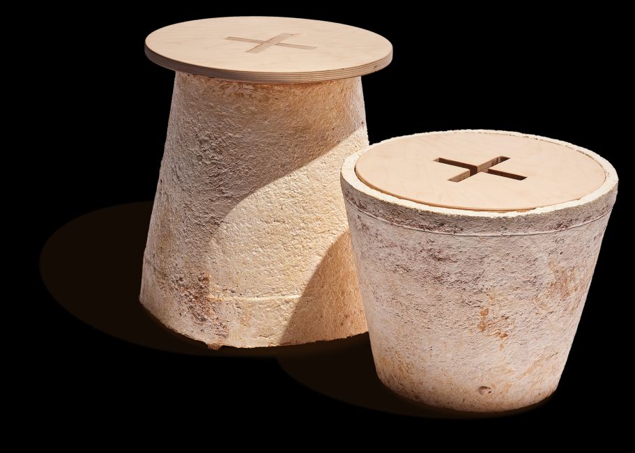 CEPELLA je kolekce stolku a taburetu, které svým tvarem připomínají hřib. Autorkami jsou Karolína Petřeková a Petra Jašicová ze spolku MYMO. „Myceliový plášť taburetu přímo srůstá s dřevěnou základnou. Tato výjimečná vlastnost mycelia jako přírodního lepidla ukazuje na možnost srůstání s dřevěnými materiály,“ vysvětluje Karolína Petřeková a Petra Jašicová ji doplňuje: „Stolek s celomyceliovým základem a odnímatelným dřevěným víkem je ve svém tvarovém řešení odzrcadlením taburetu. Jeho přidanou funkcí je úložný prostor na drobné předměty.“