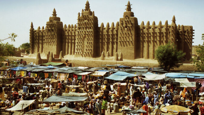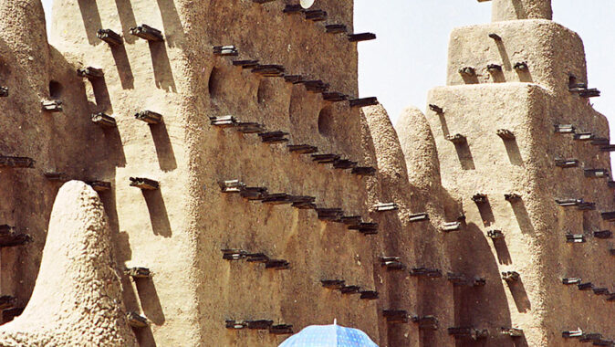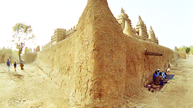 cestovatel v africkém Mali, kde stojí unikátní příklady tzv. súdánsko-sahelské architektury.