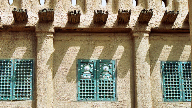 súdánsko-sahelském stylu. Specifická architektura pracuje s oblými tvary v