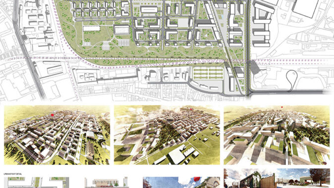 v němž navrhuje čtvrť s různorodou zástavbou, která využívá svůj potenciál, ale