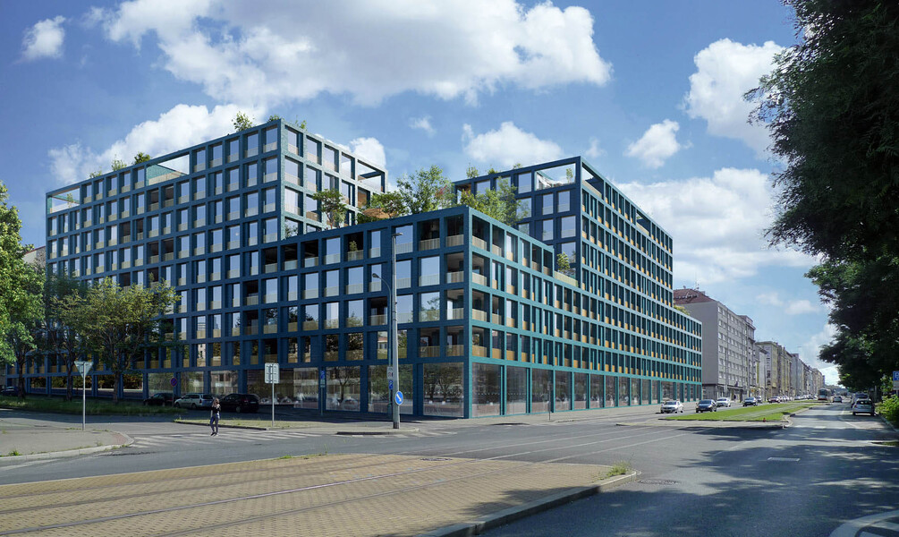 Návrh počítá také s prostorem pro kavárny, obchody nebo coworking. Dům vytváří živý blok, který plně odpovídá významu a potenciálu lokality.