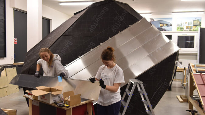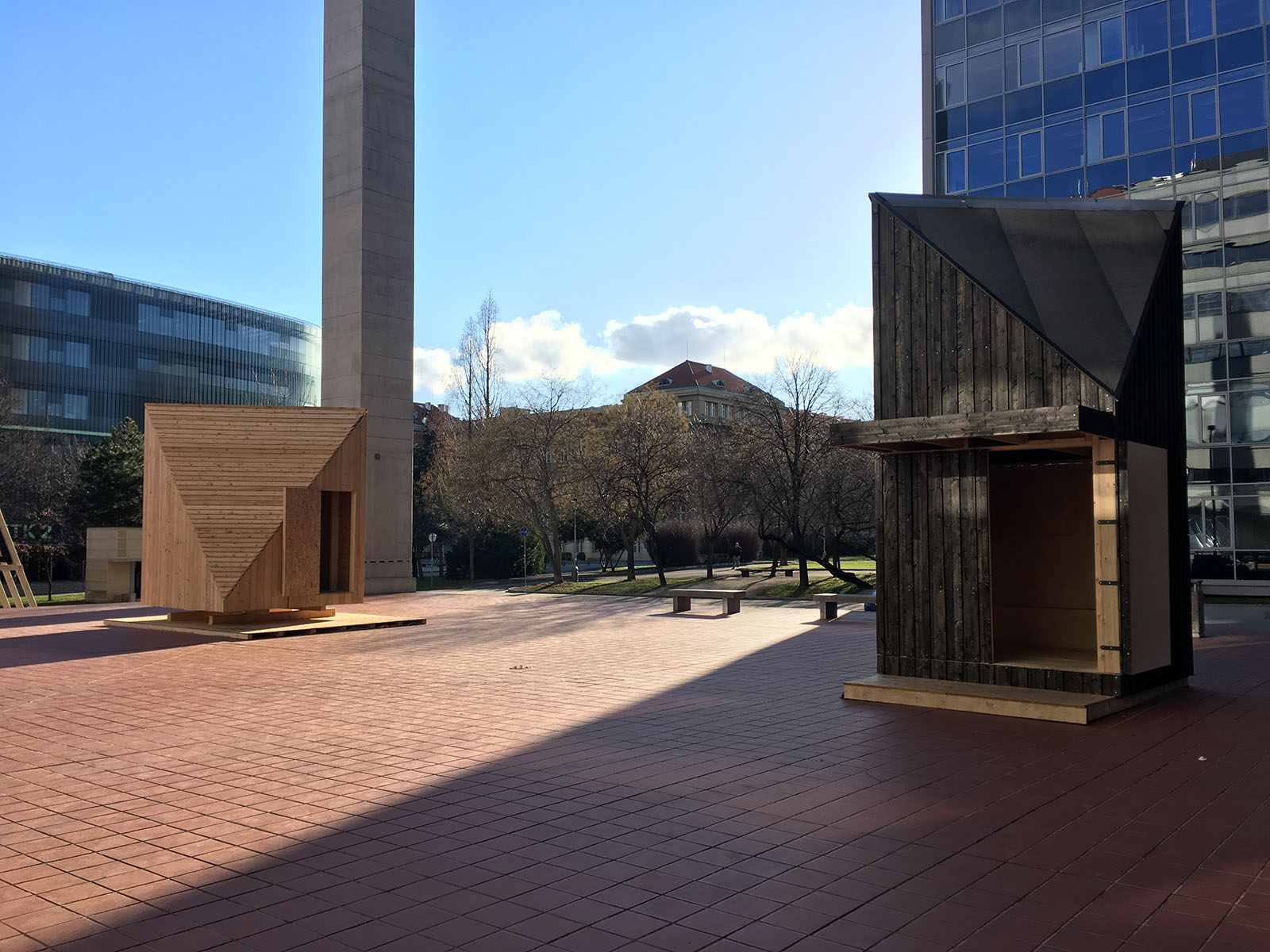 Na prostranství před budovou fakulty týmy studentů samy stavěly