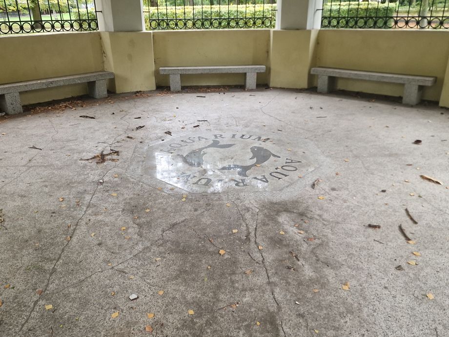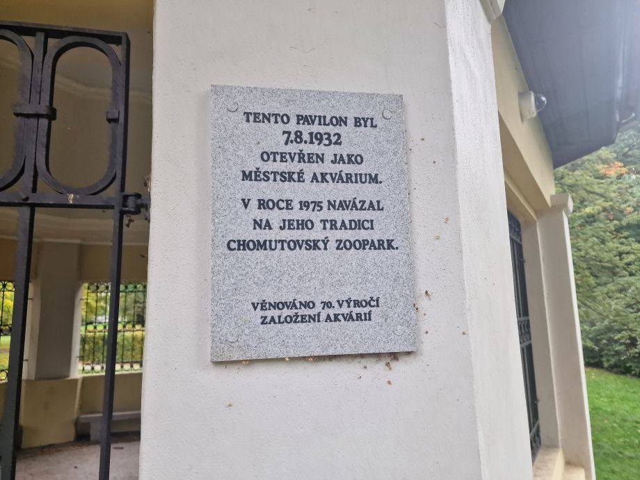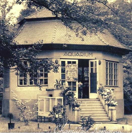 Pozornost poutá díky neobvyklému historickému nápisu „Akvárium“, umístěnému uvnitř na dlažbě. V roce 1932 v něm totiž vzniklo městské akvárium, kde bylo k vidění takřka sto druhů ryb, obojživelníků a plazů. Pamětníci si nevšední zážitky z chomutovského parku s úsměvem vybavují dodnes.