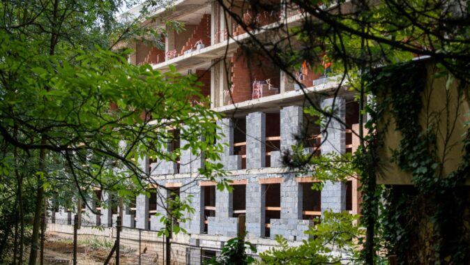 vystavěný v socialistickém stylu a před rekonstrukcí stižený již mnohými