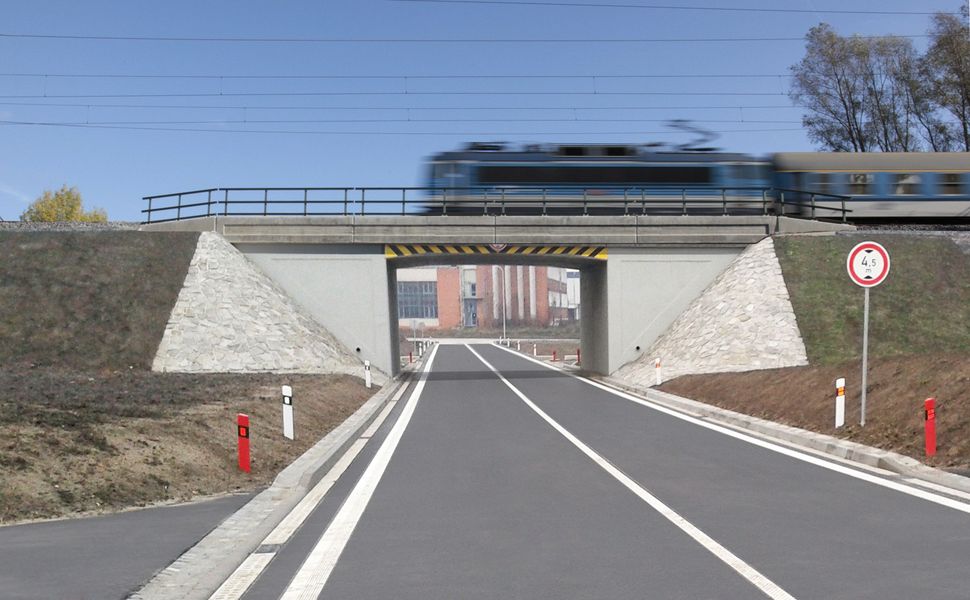Stavba vjezdu do nového areálu, který odklonil nákladní dopravu na okraj Otrokovic a ulevil tamním obyvatelům, byla náročná zejména kvůli výstavbě podjezdu pod železnicí, která byla téměř po celou dobu v provozu. „Laik ani nepozná, co se tam událo. Udělala se střední nosná zeď, půlku podjezdu vždy vybetonovali bokem a dovezli ji pod podjezd a zabudovali, to samé udělali z druhé strany. Nebylo to jednoduché,“ podotkla Nová.